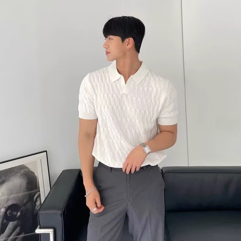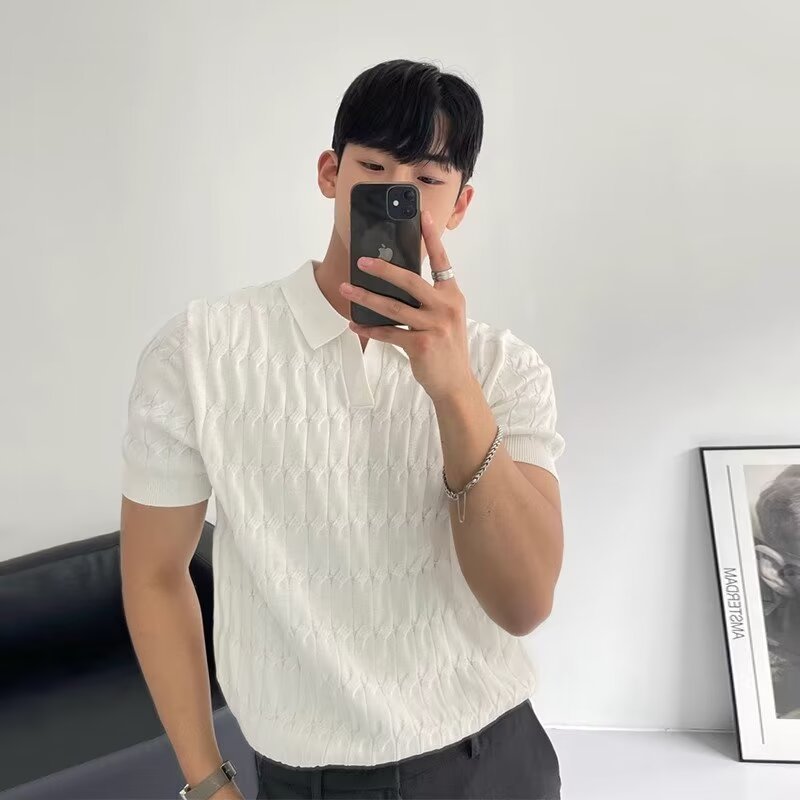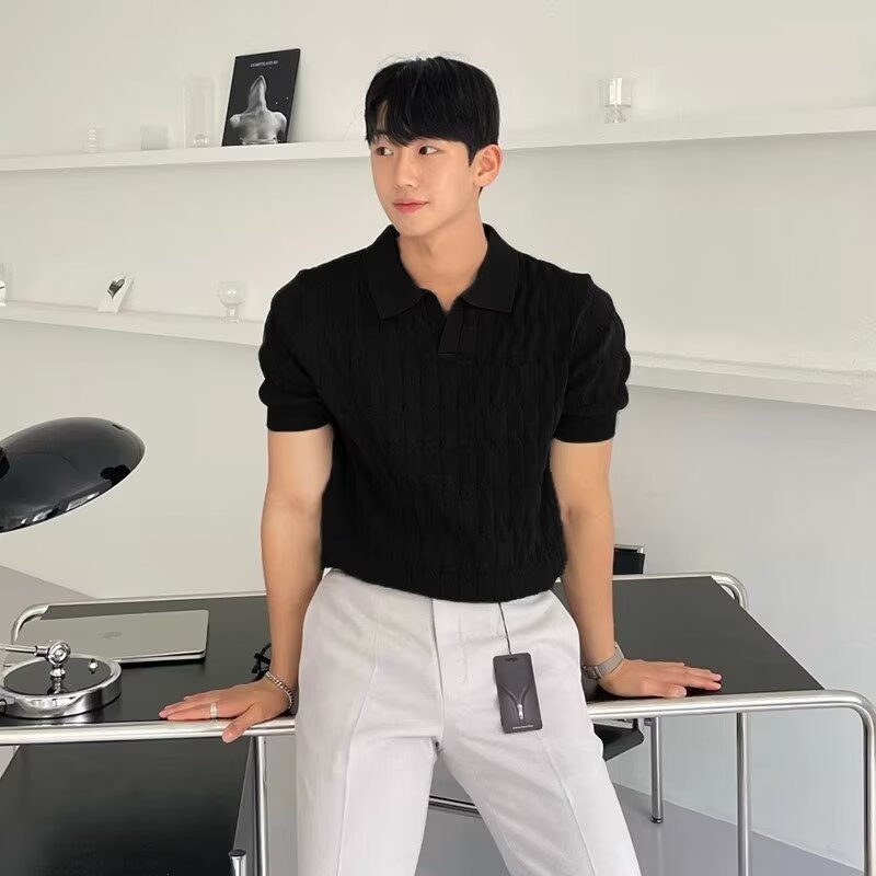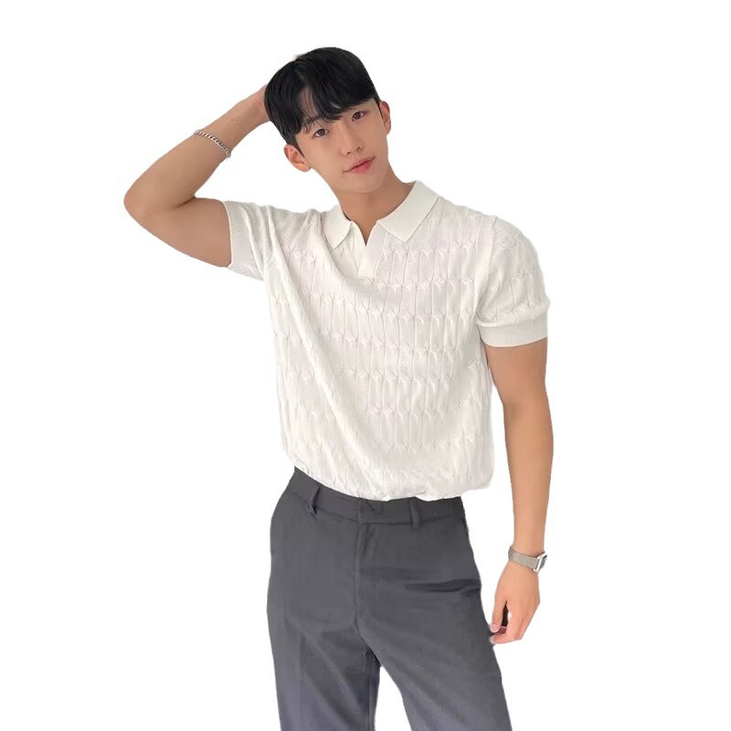 夏季短袖POLO杉男高级感韩版修身翻领纯色休闲薄款半袖针织上衣潮
