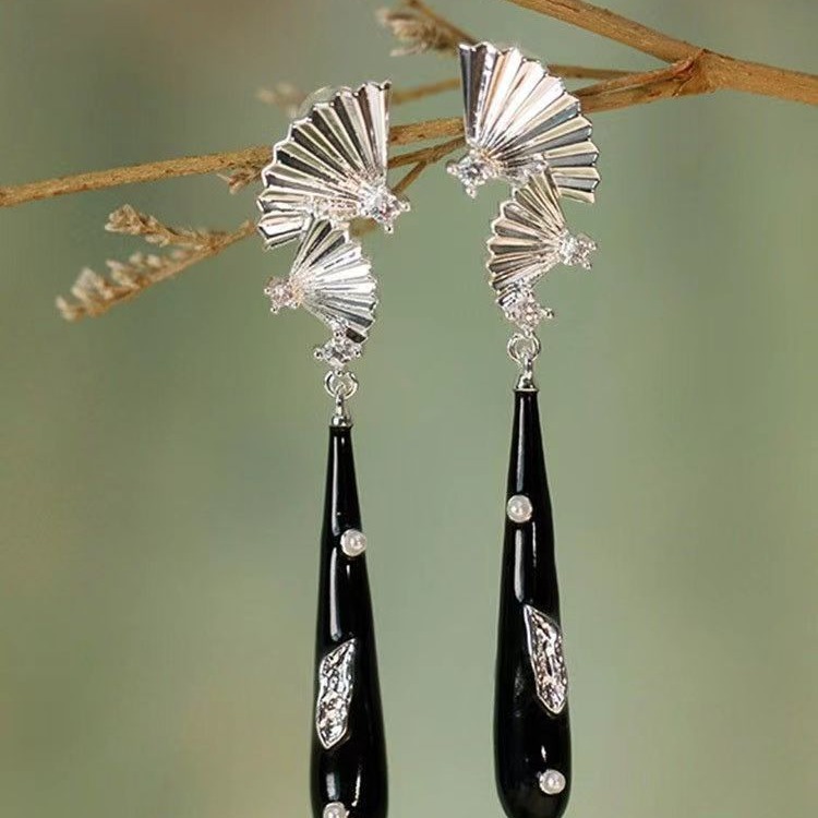 新中式扇子耳夹无耳洞女新款艺术生高级感国风古风清冷耳饰耳环