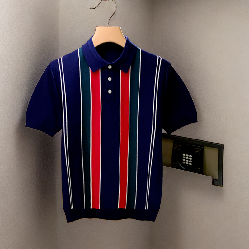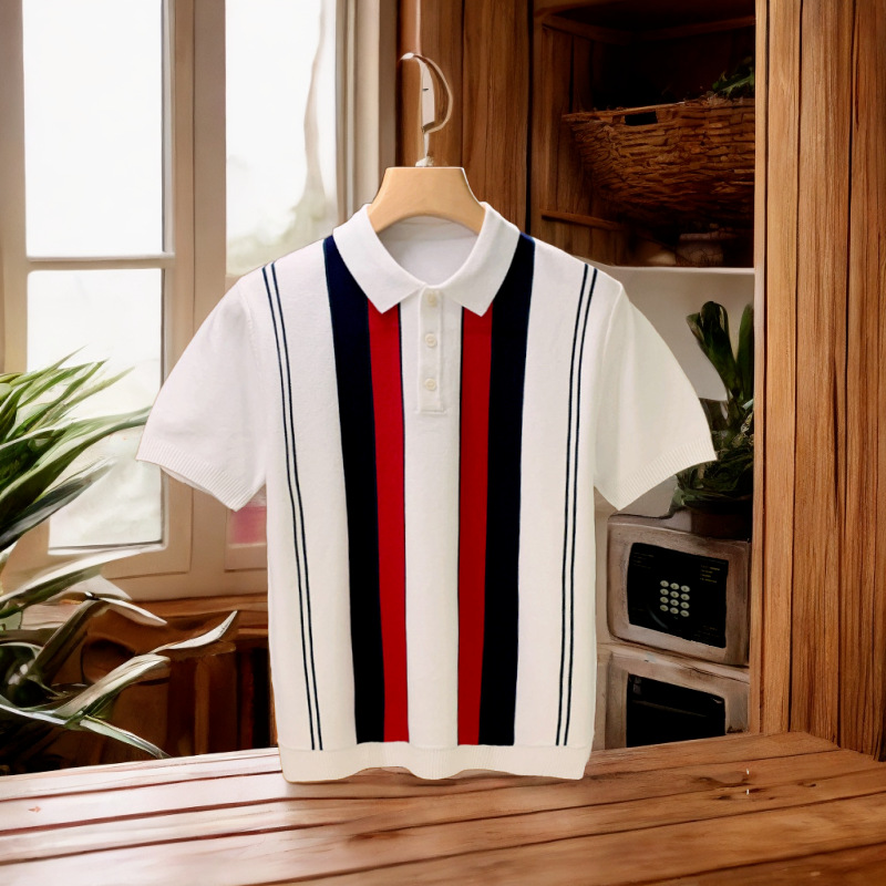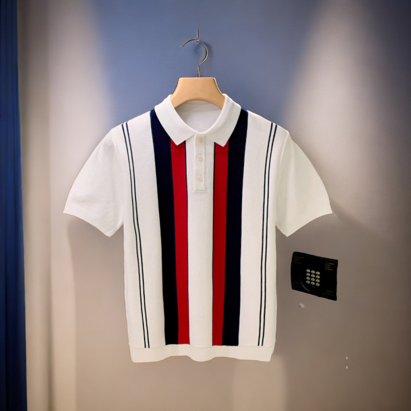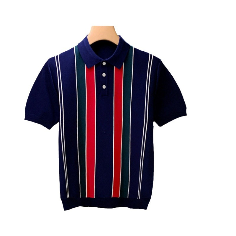 夏季新款短袖POLO衫男士韩版潮流时尚翻领条纹T恤短袖上衣