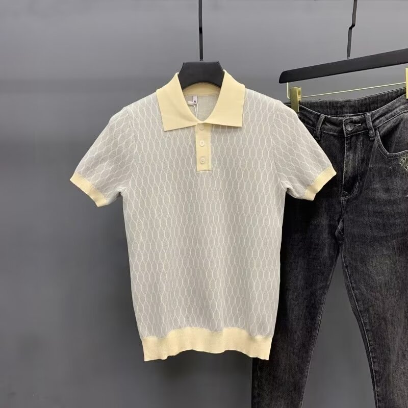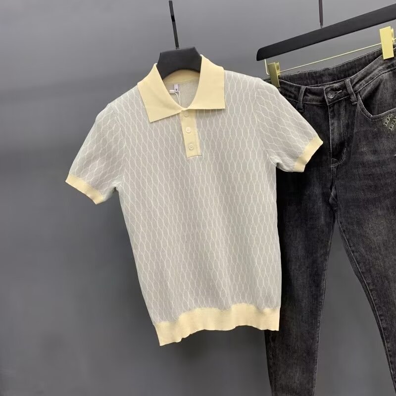 新款休闲时尚男士短袖t恤 夏季新款高级菱格翻领上衣polo衫男