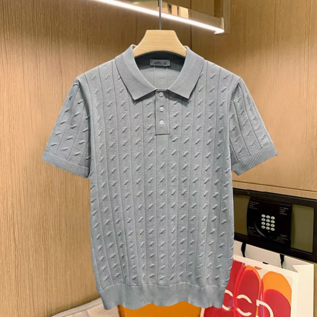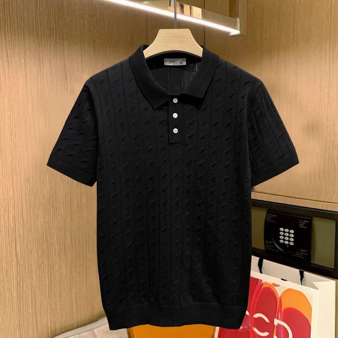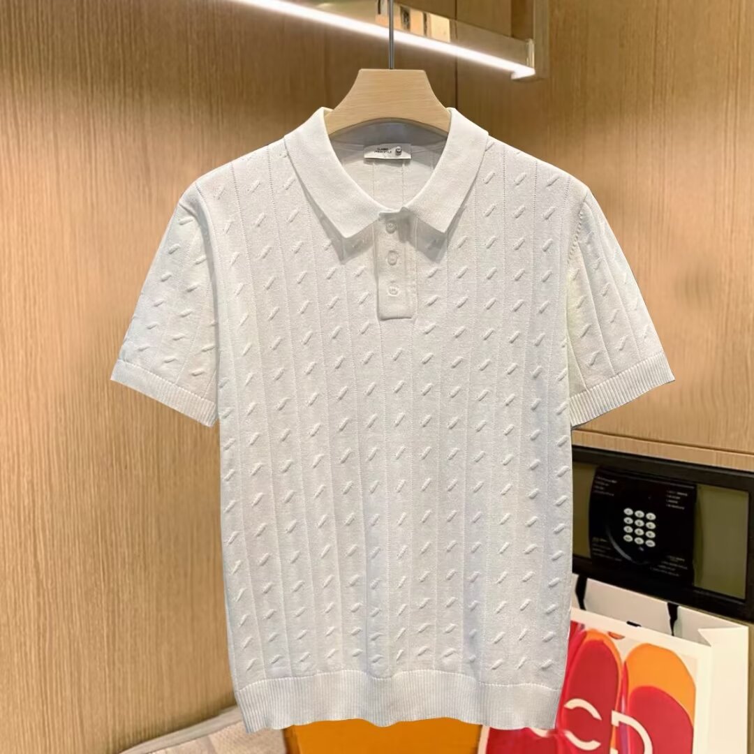 夏季冰丝男翻领镂空冰丝短袖polo衫男士潮流针织T恤打底上衣