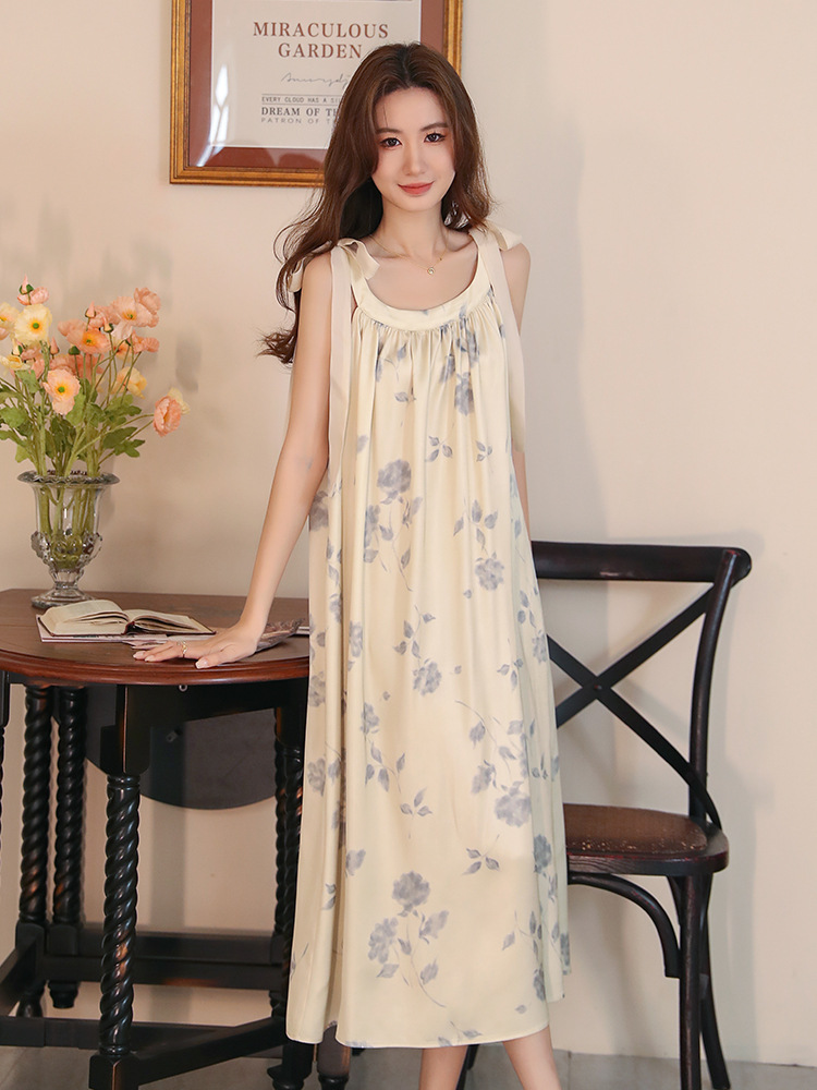 吊带睡裙女夏冰丝睡衣连衣裙薄款时尚印花高级感家居服宽松可外穿