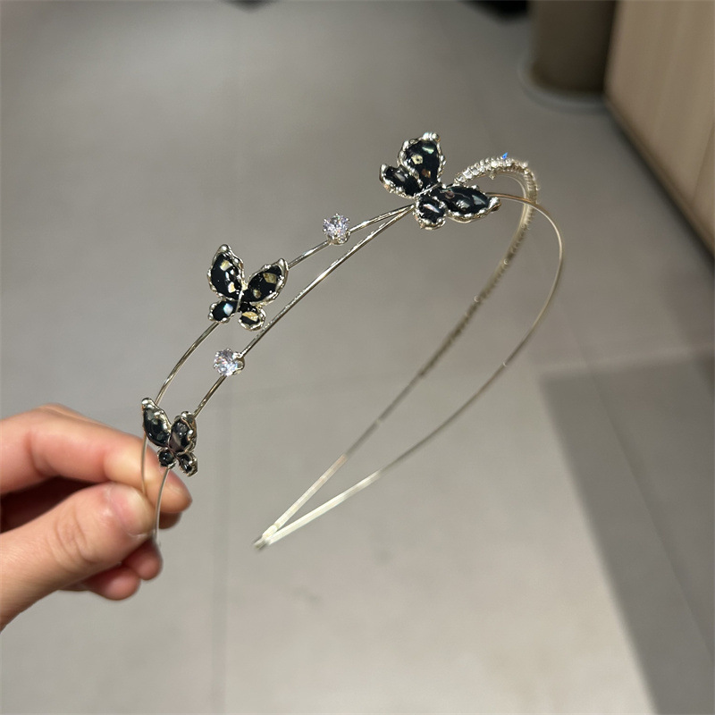 韩式复古滴油双层蝴蝶发箍交叉锆石水钻法式森系头箍发卡头饰