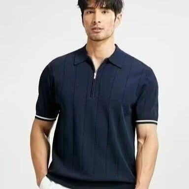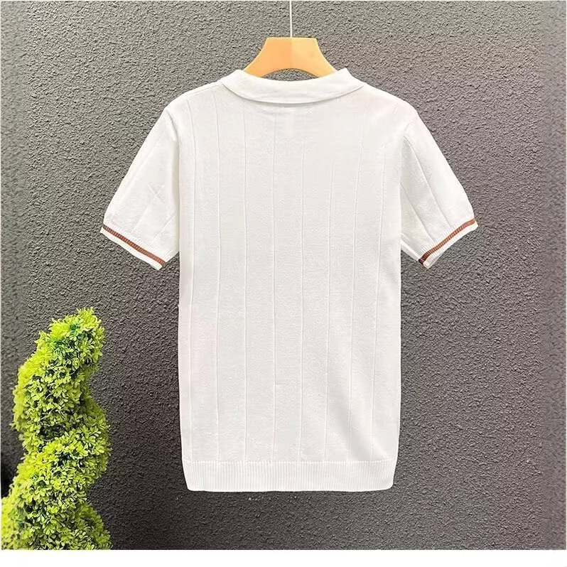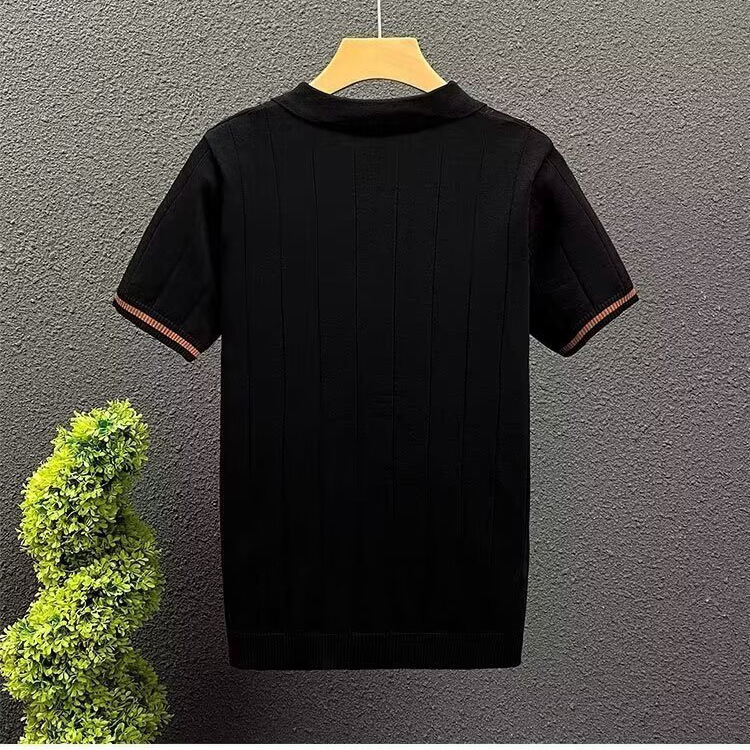 夏季薄款针织Polo衫男潮流时尚翻领轻熟风纹理T短袖