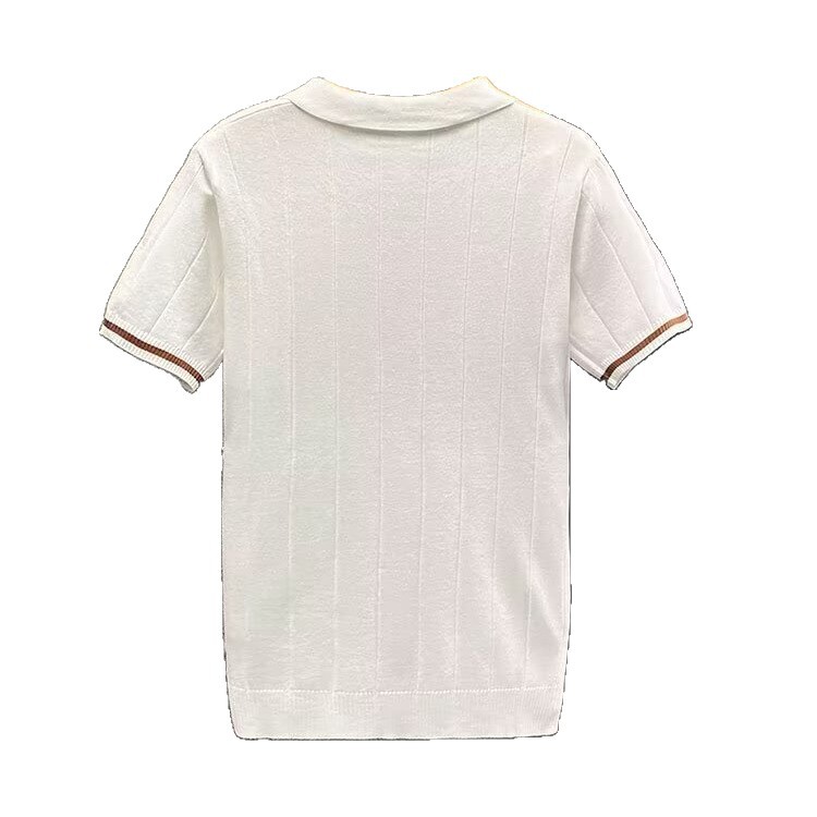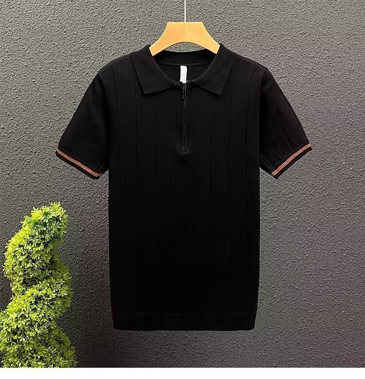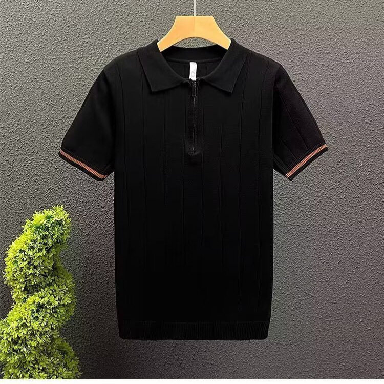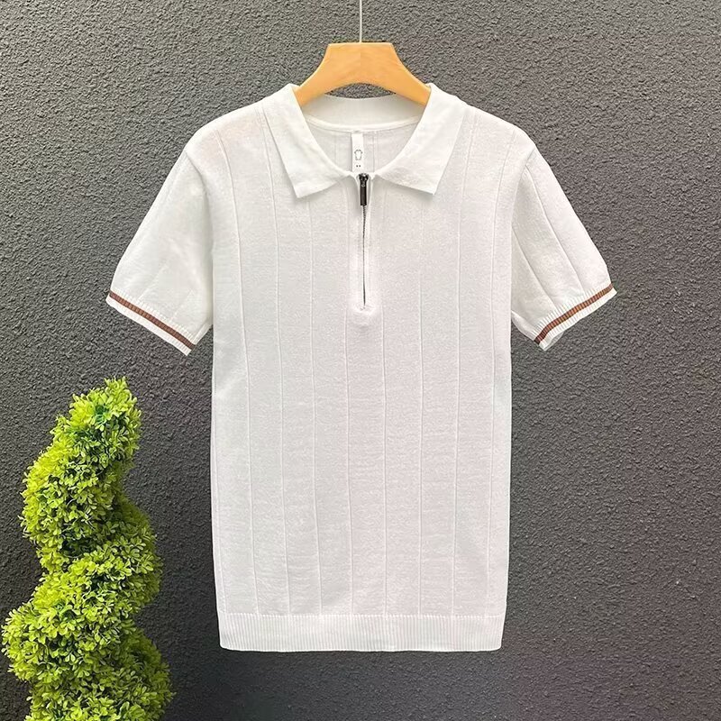 轻奢夏季薄款冰丝针织白色polo衫男短袖修身拉链休闲男士保罗t恤