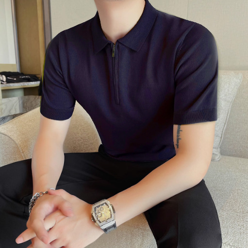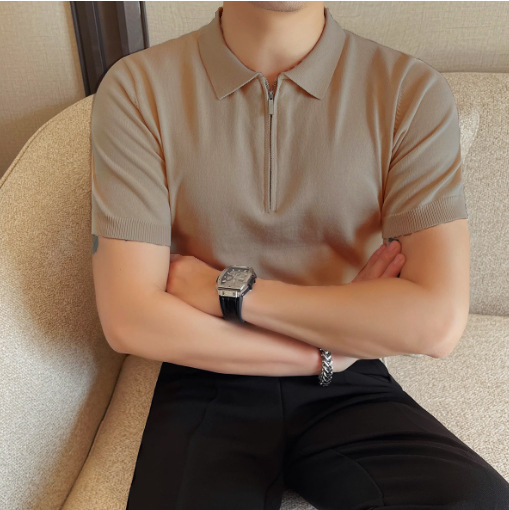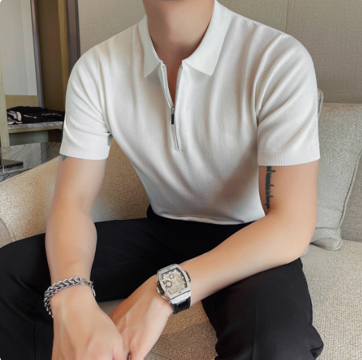 冰丝针织polo衫男短袖夏季重磅高街翻领衣服潮流男生宽松薄款t恤