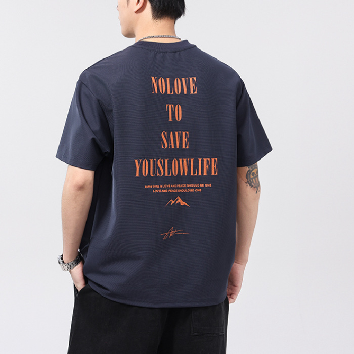 2025夏季凉感冰丝体恤衫男宽松落肩袖t恤美式印花圆领打底上衣