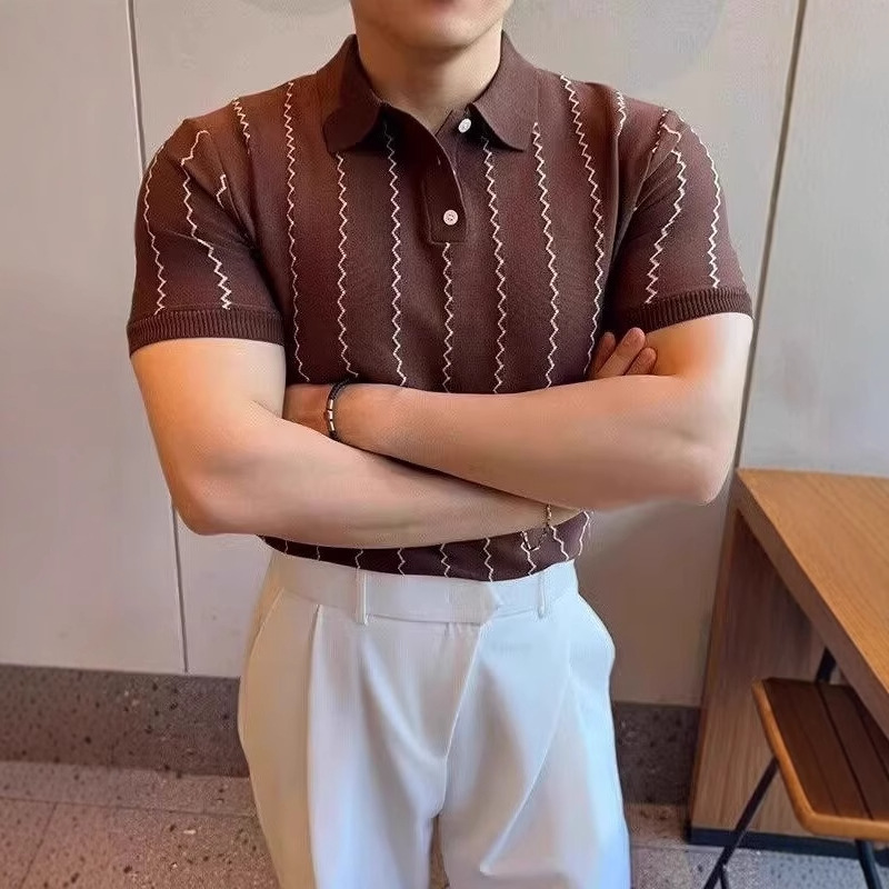 轻熟夏季薄款男士2025新款短袖polo衫商务半袖条纹针织翻领T恤男