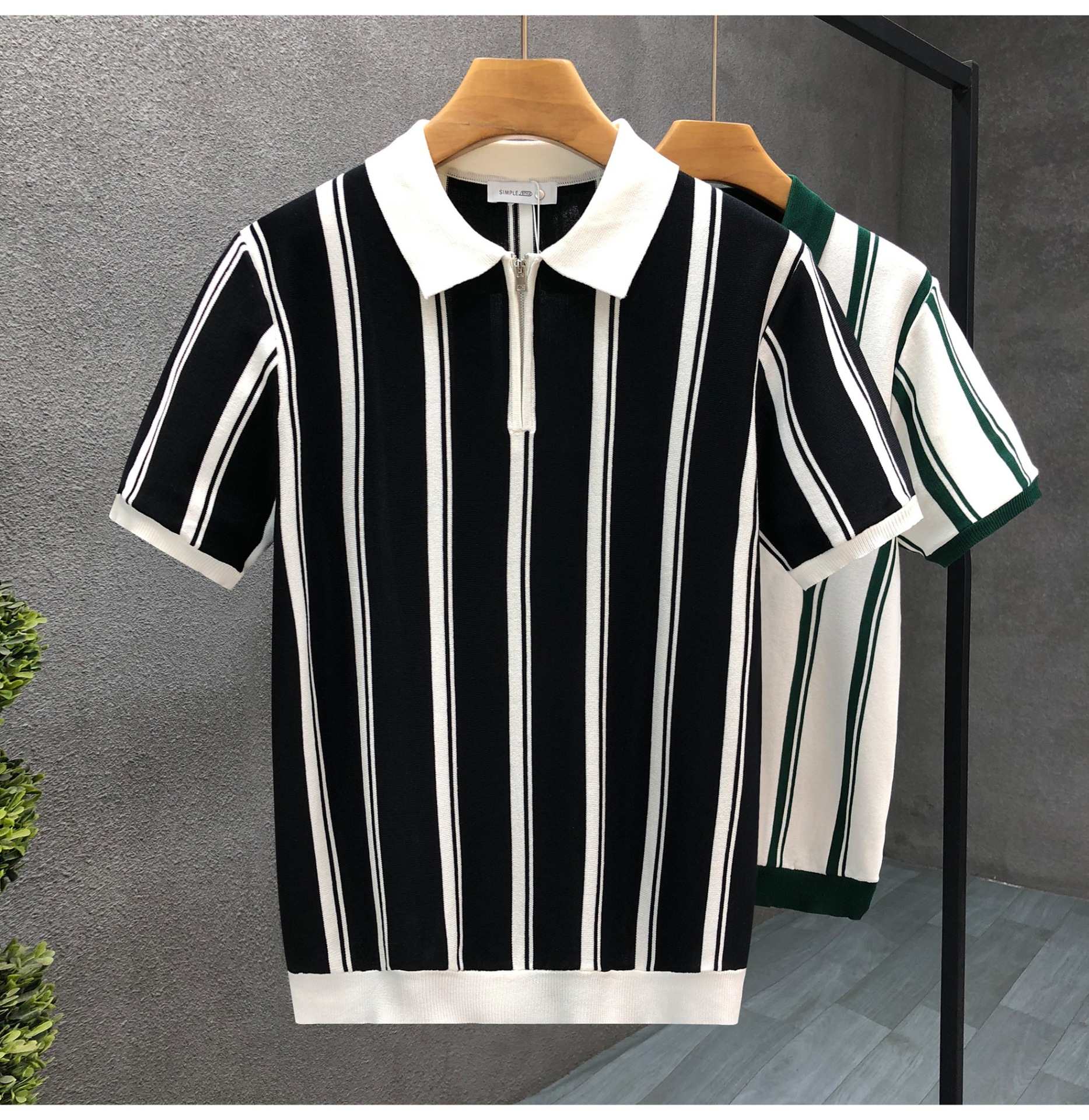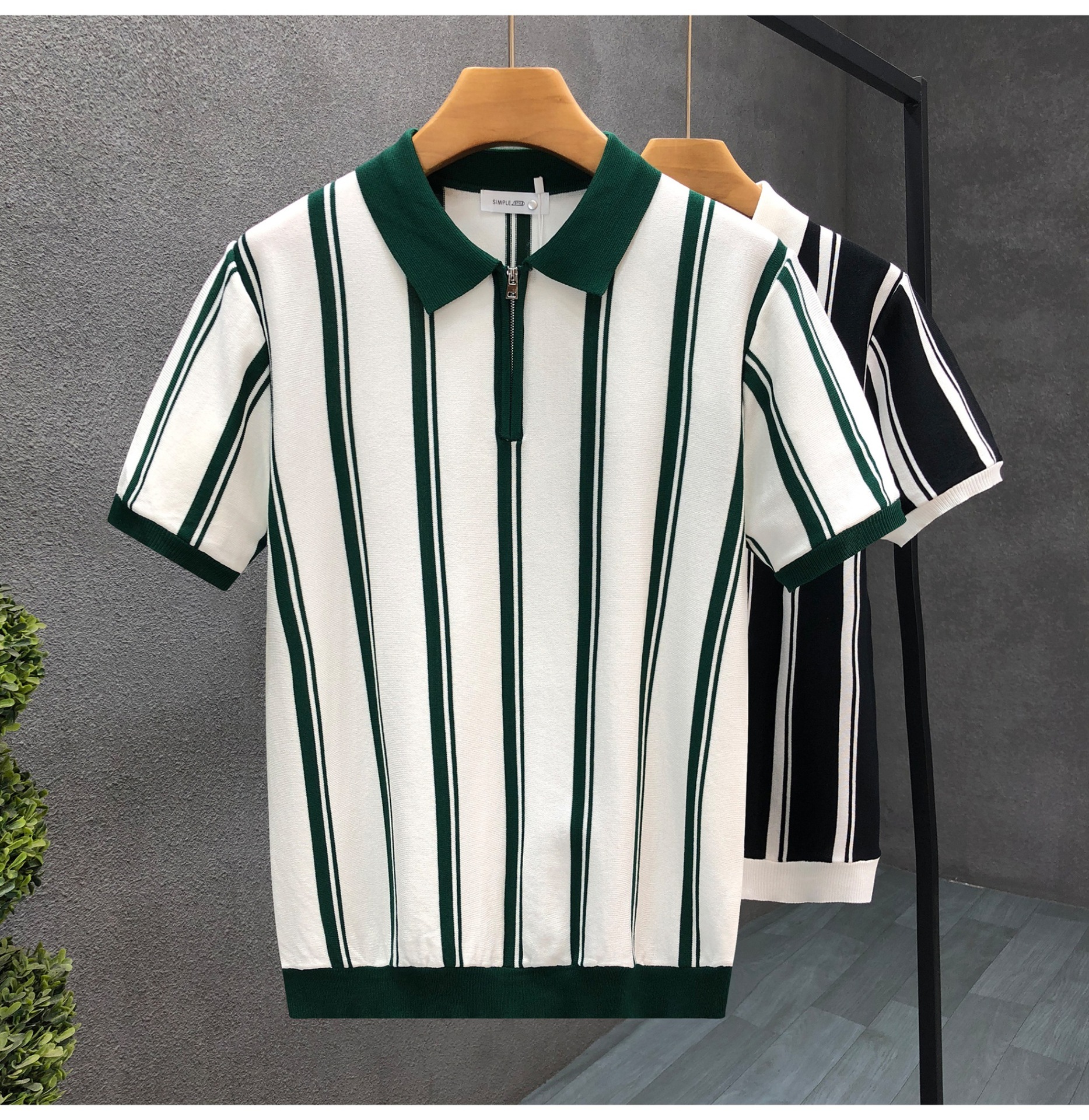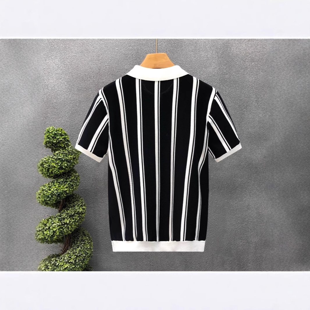 新款双肩拼色翻领POLO衫潮男复古修身短袖T恤休闲男士上衣潮
