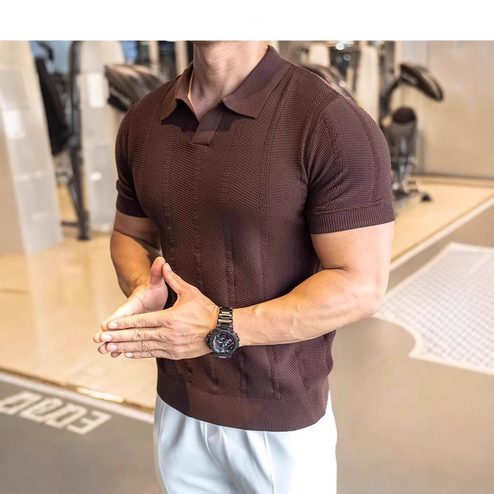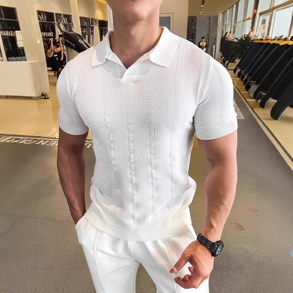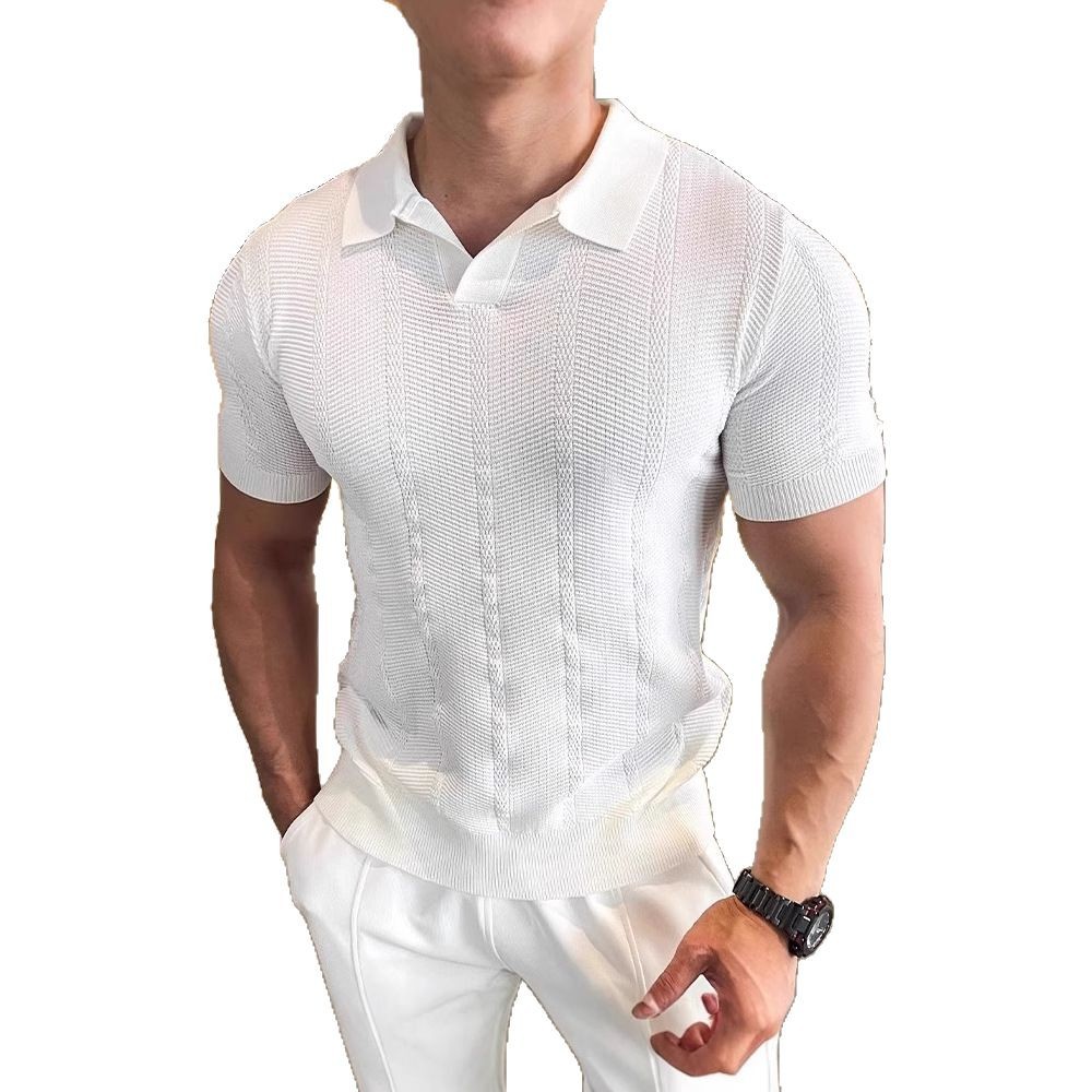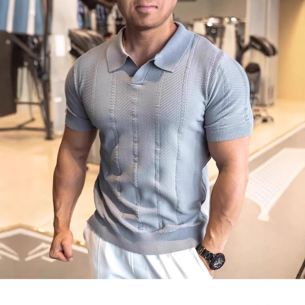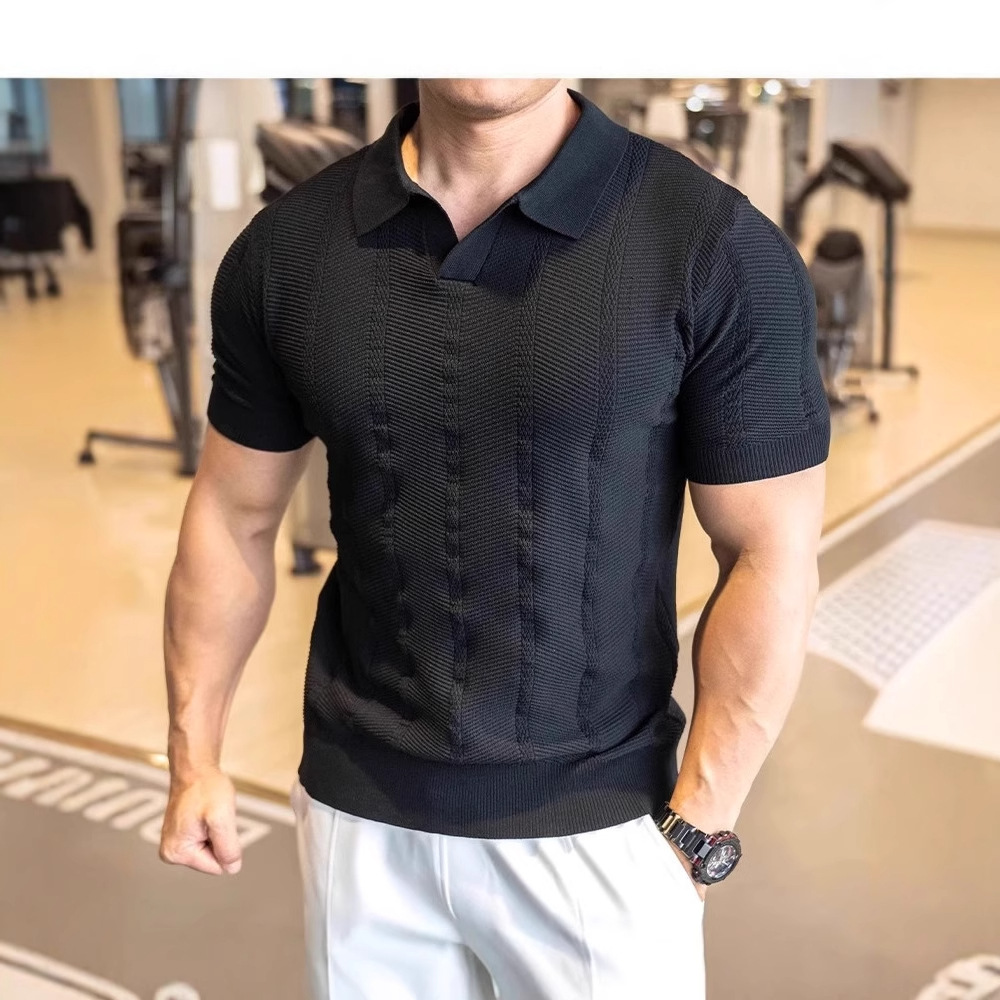 2025新款潮流修身夏季简约半袖上衣polo衫短袖男薄款针织翻领T恤