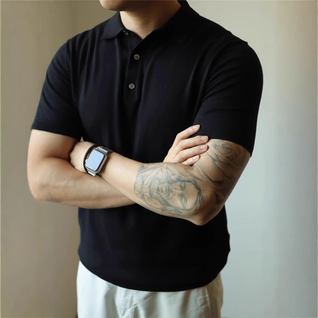 轻熟风夏季薄款男士修身休闲POLO衫美式复古时尚简约T恤短袖潮男