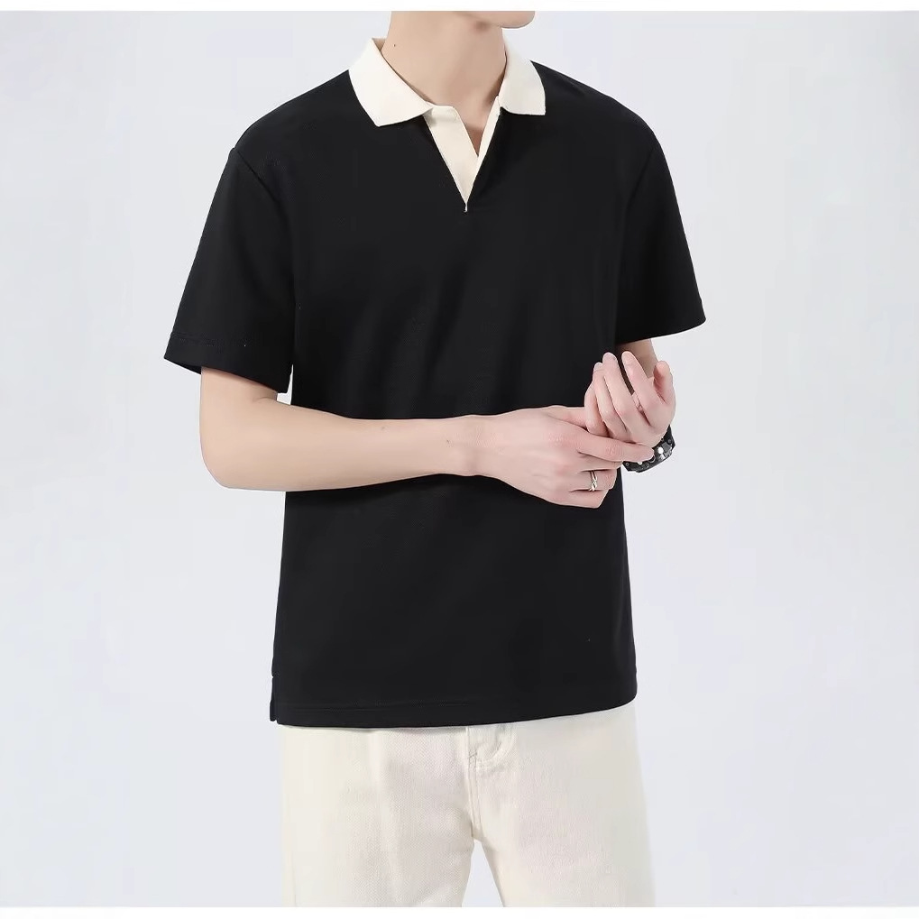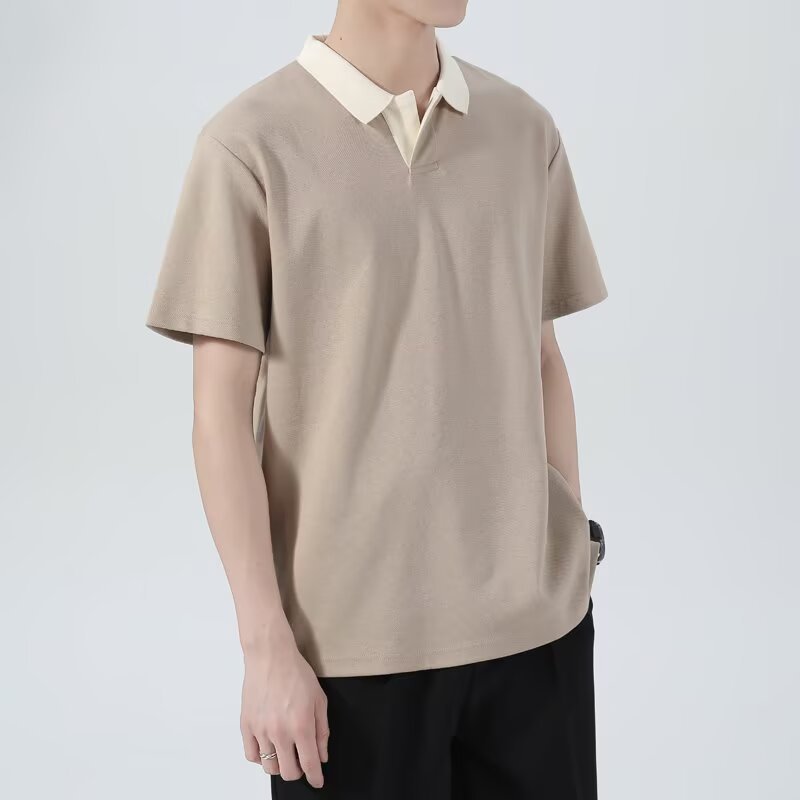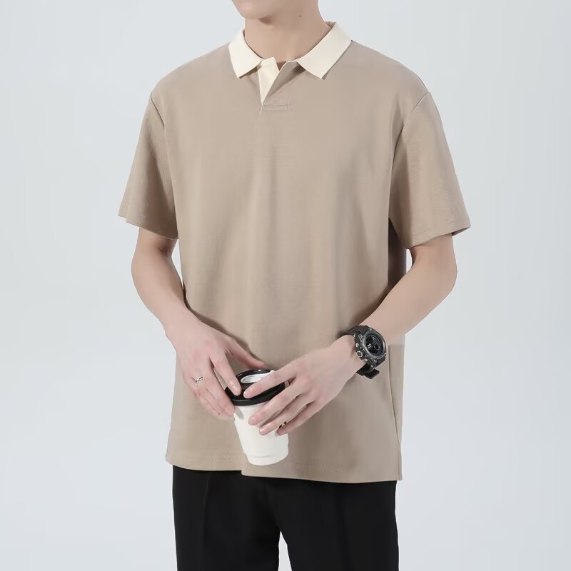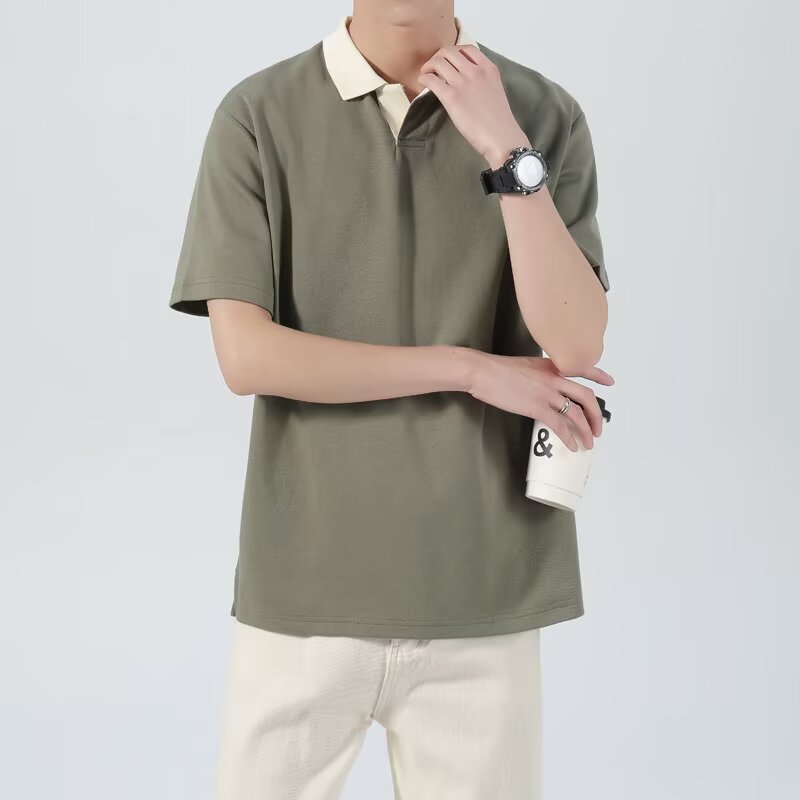 港风复古短袖polo衫男夏季潮流韩版修身翻领t恤男生百搭休闲半袖