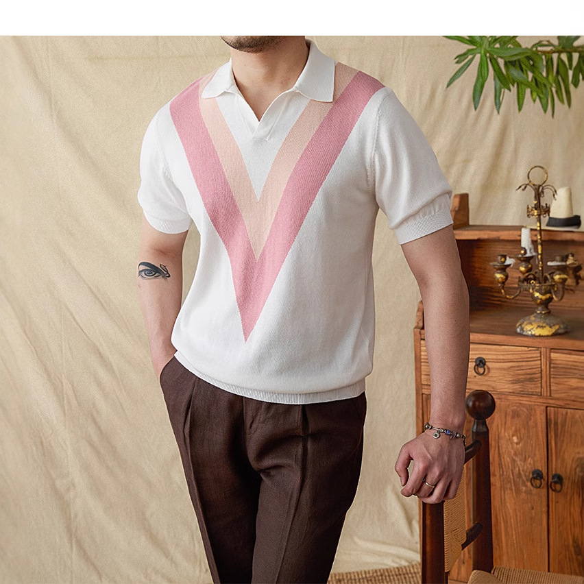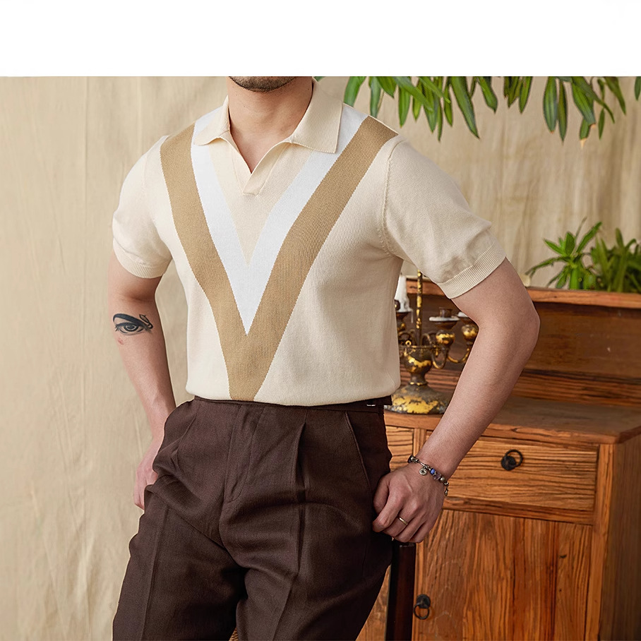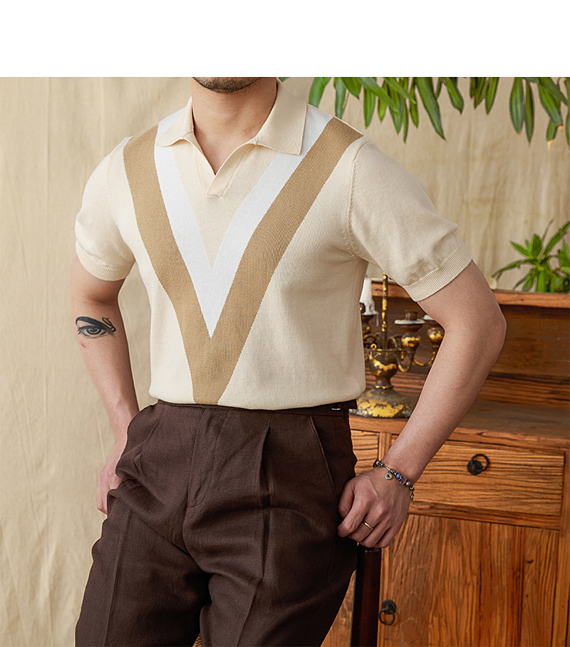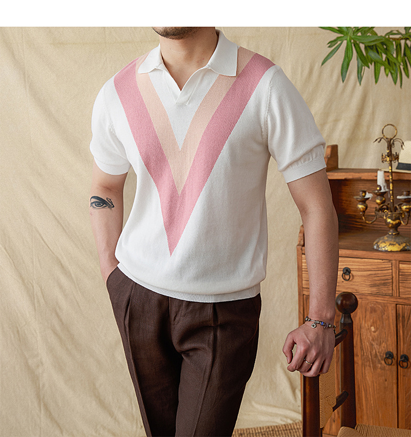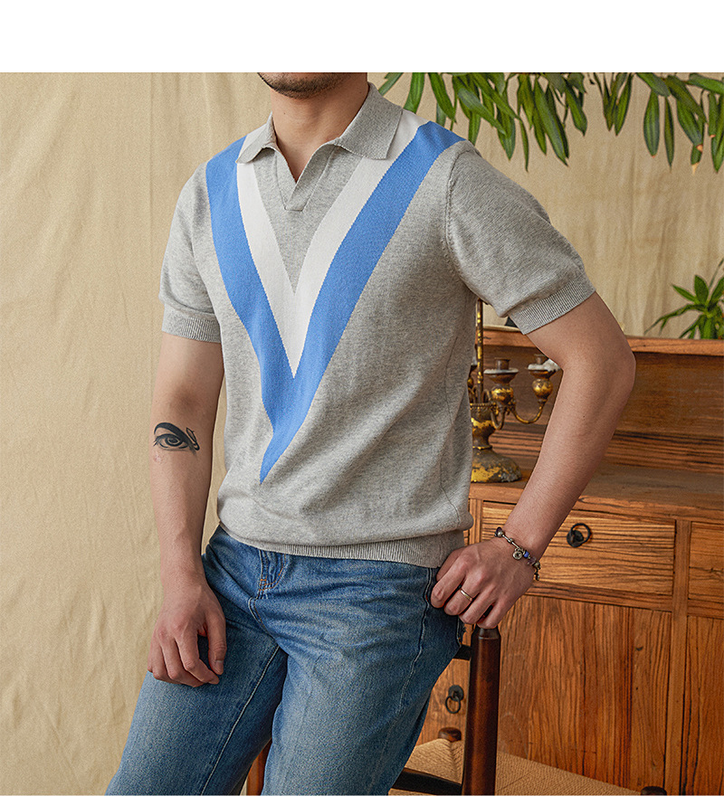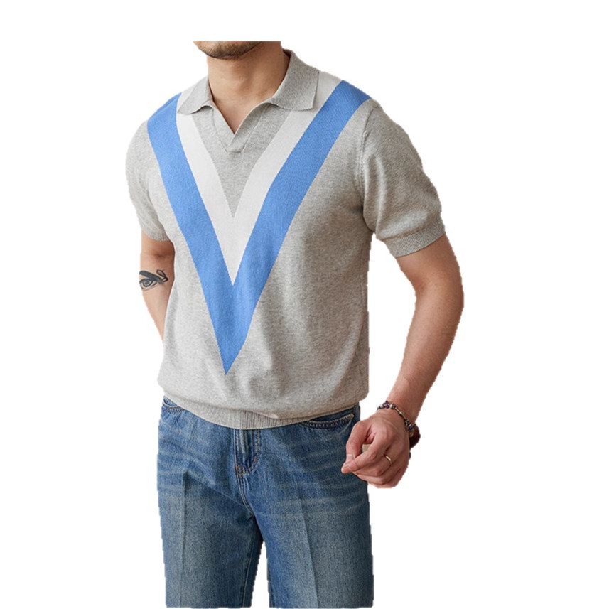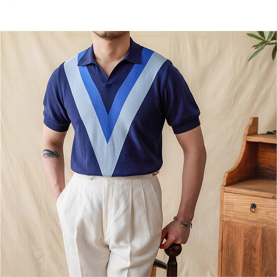 The 2025 new color-blocking knitted POLO shirt is a fashionable and breathable thin short-sleeved men's lapel color-blocking pullovers