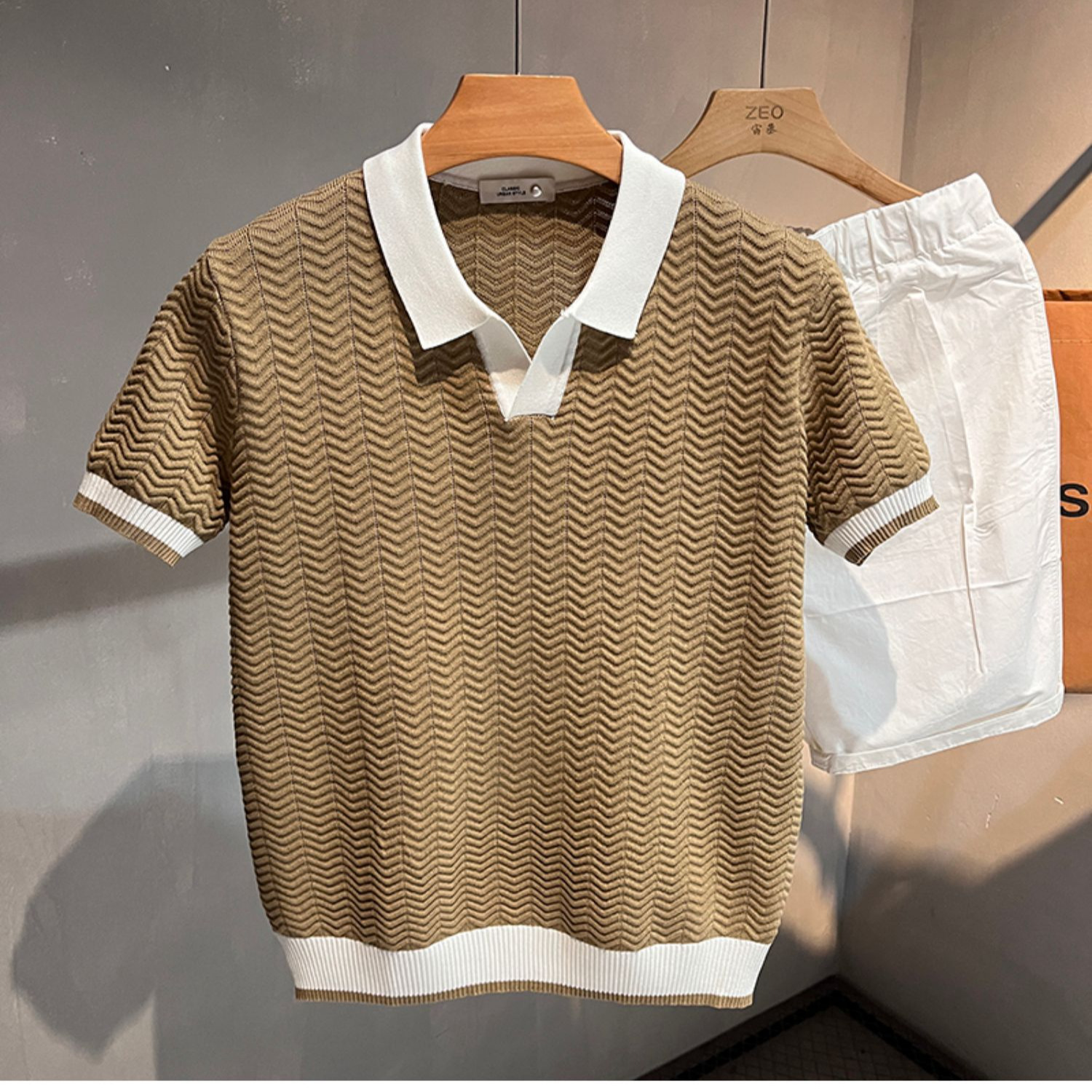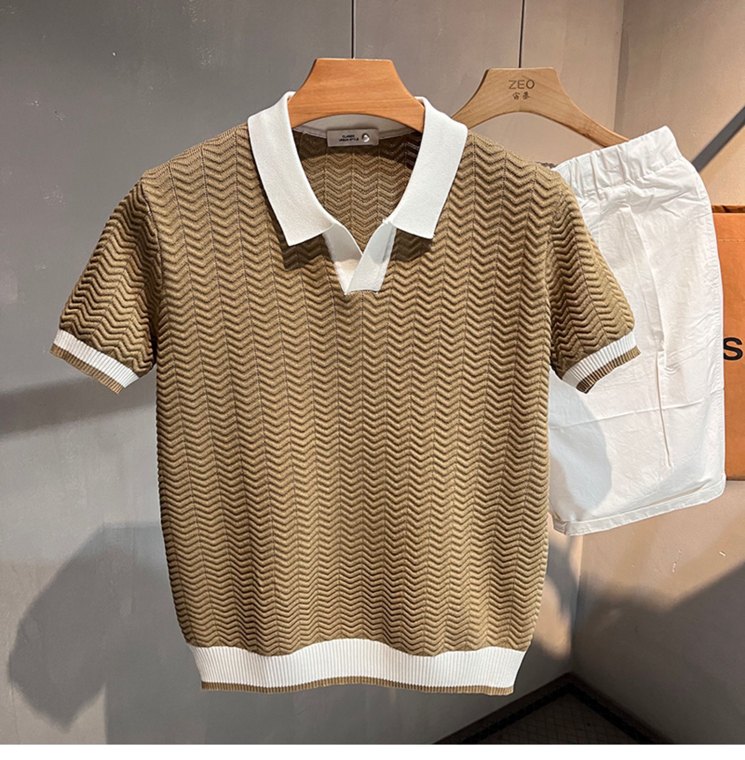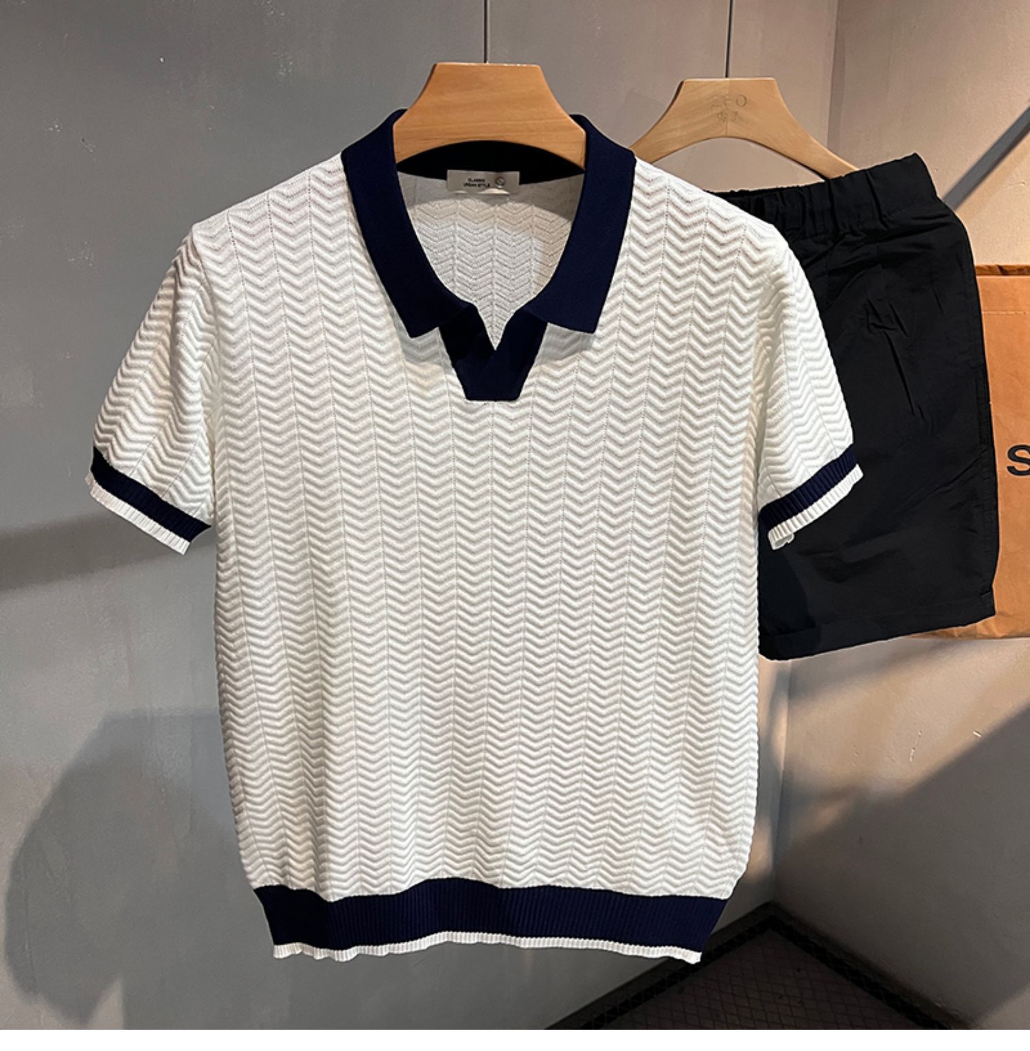 翻领冰丝polo衫男撞色针织衫男士青年修身高端短袖夏季新款男装潮