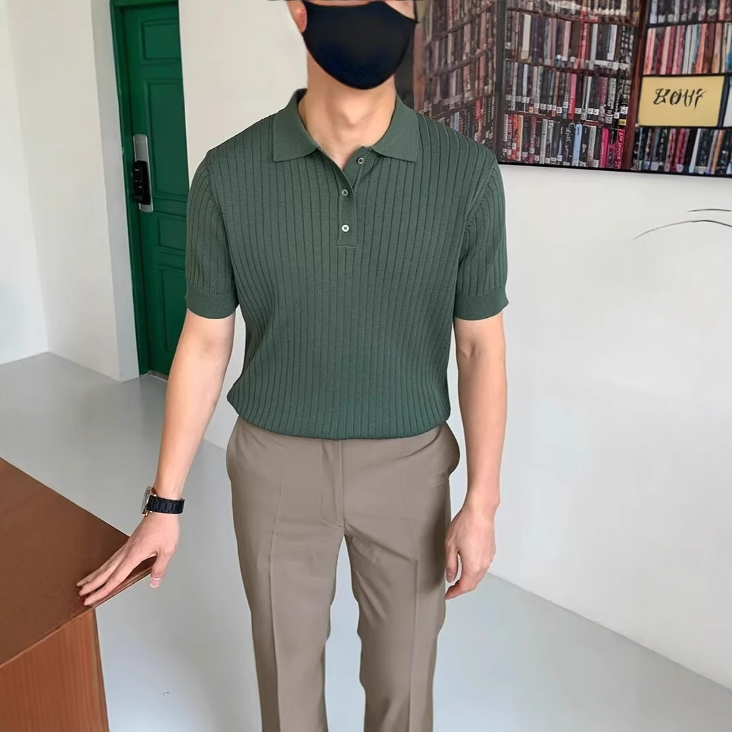 夏季薄款男装修身休闲针织POLO衫韩版丝光棉时尚简约T恤短袖潮男