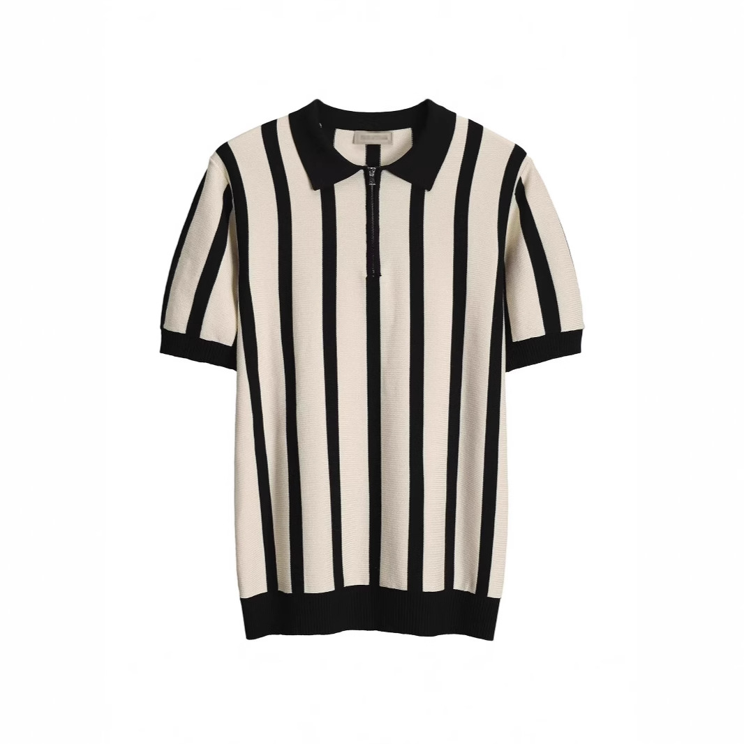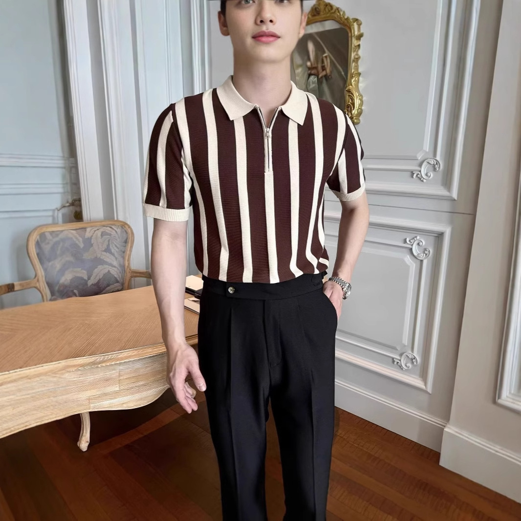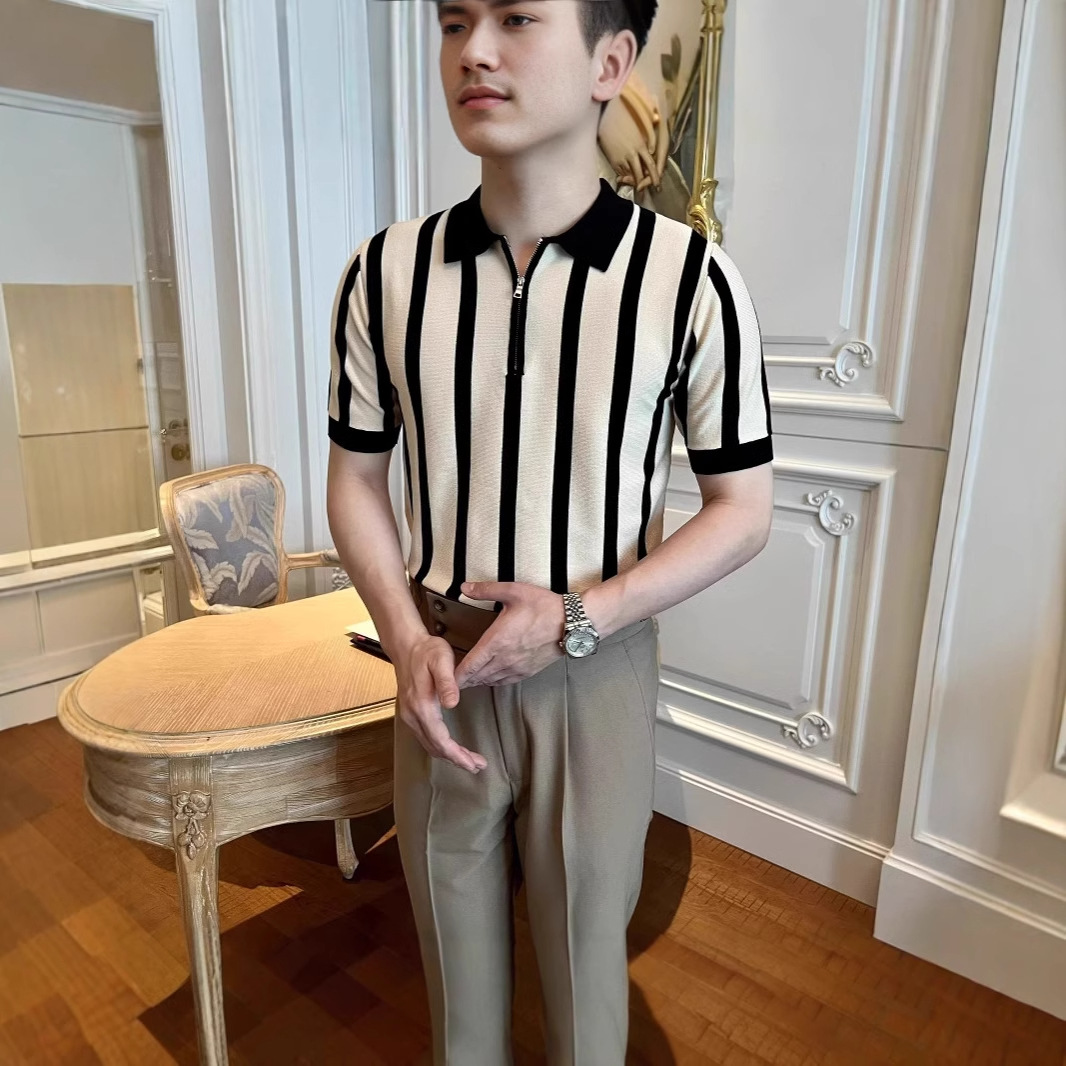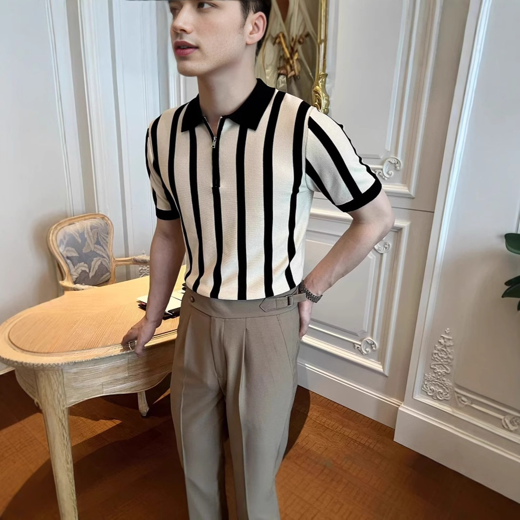 2025短袖polo衫男潮流百搭韩版修身条纹上衣夏季薄款针织t恤男潮