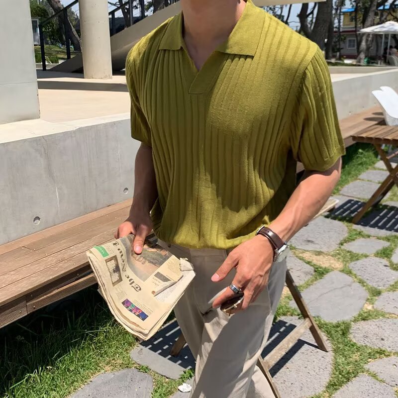 港风翻领polo衫短袖男潮牌宽松休闲夏季薄款纯色针织衫t恤打底衫