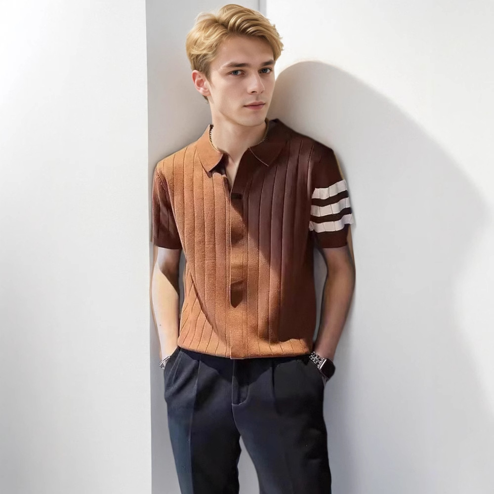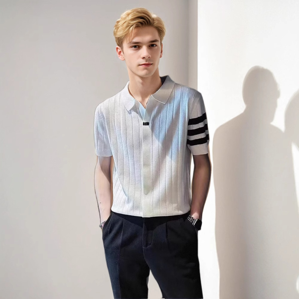 夏季男士针织短袖Polo衫韩版修身纯色冰丝休闲翻领半袖T恤打底衫