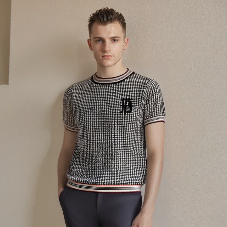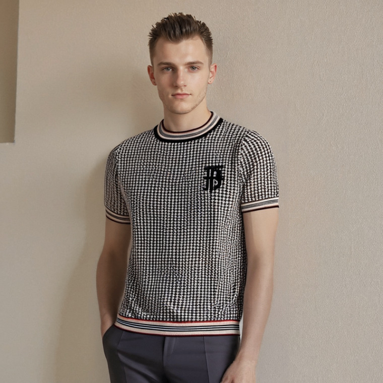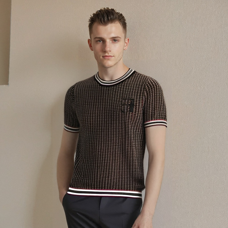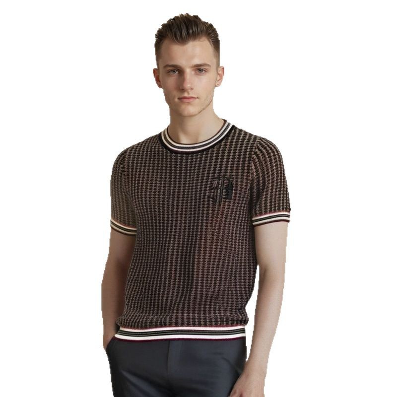 高端短袖T恤男士夏季2025新款高级感男装翻领体恤格子针织POLO衫
