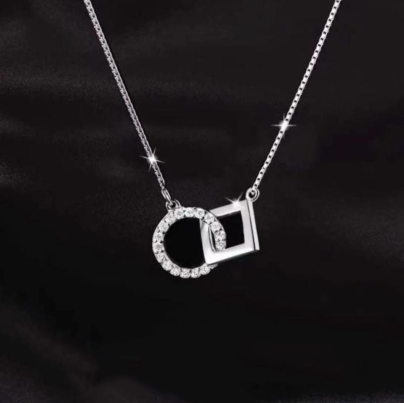 S925纯银项链女百搭简约圆形方形相扣小众设计感网红款锁骨链