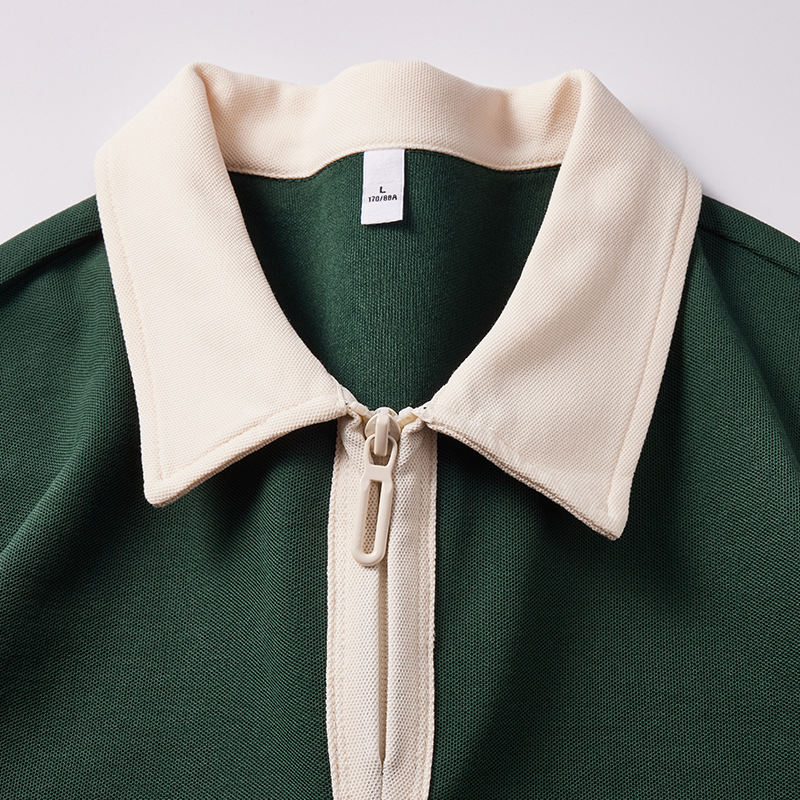 墨绿色拼色半拉链有领t恤男宽松休闲夏季纯色短袖翻领polo衫男装