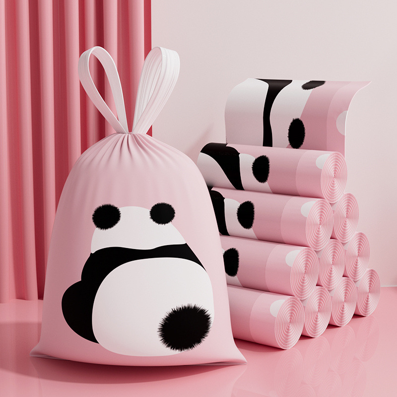 熊猫抽绳垃圾袋加厚大号手提式家用客厅卧室宿舍厕所高颜值实惠装