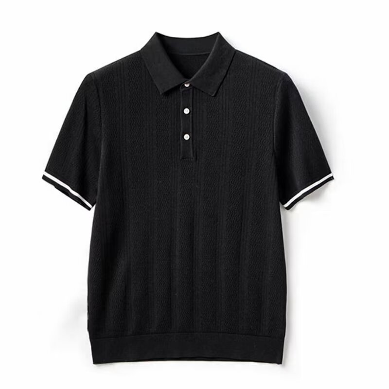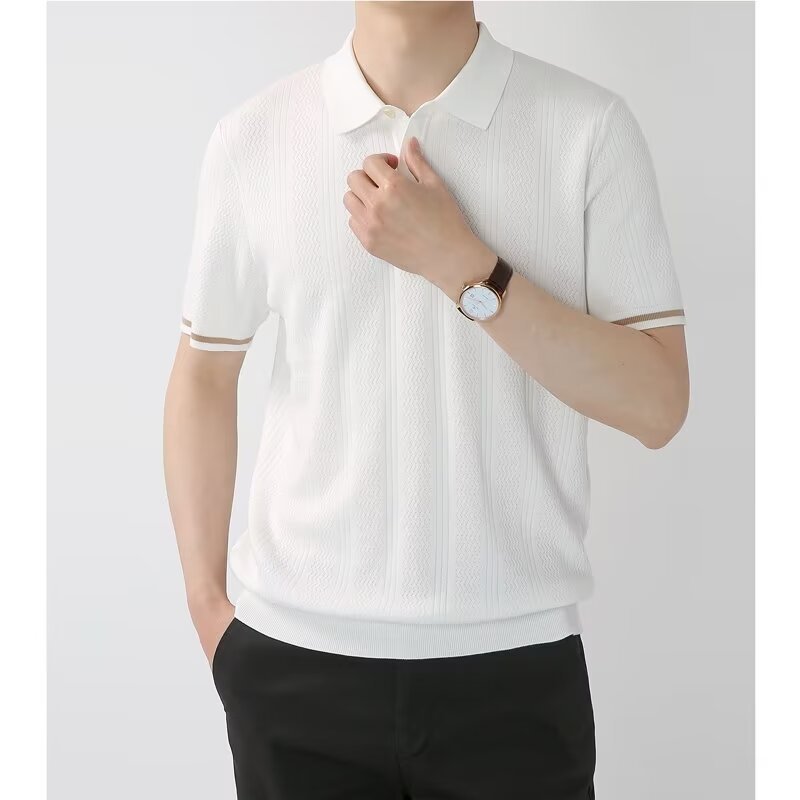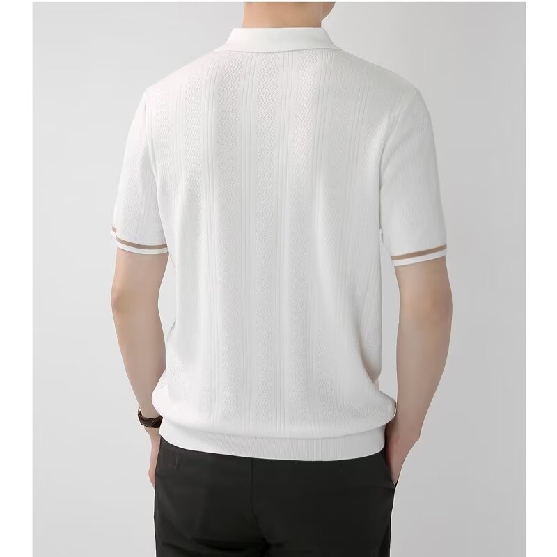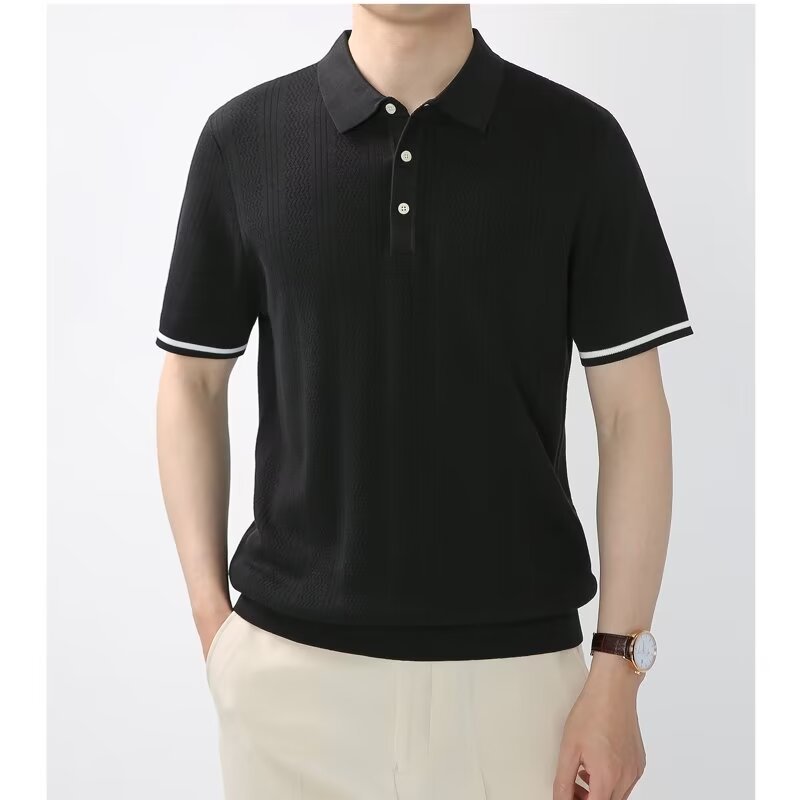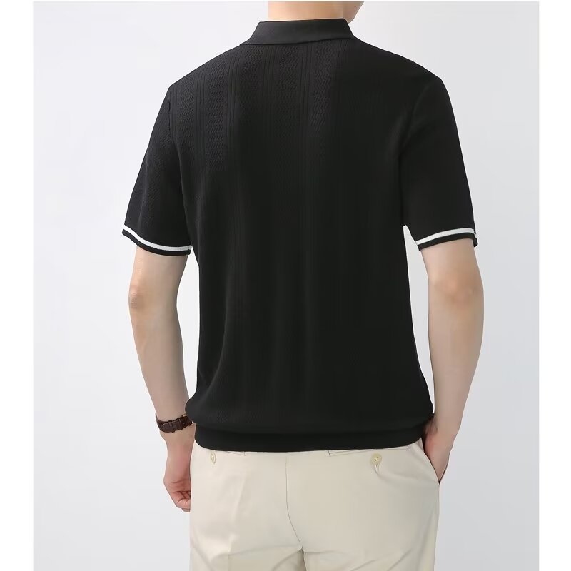 夏季针织翻领polo衫男士拉链纯色商务休闲修身短袖T恤打底衫上衣