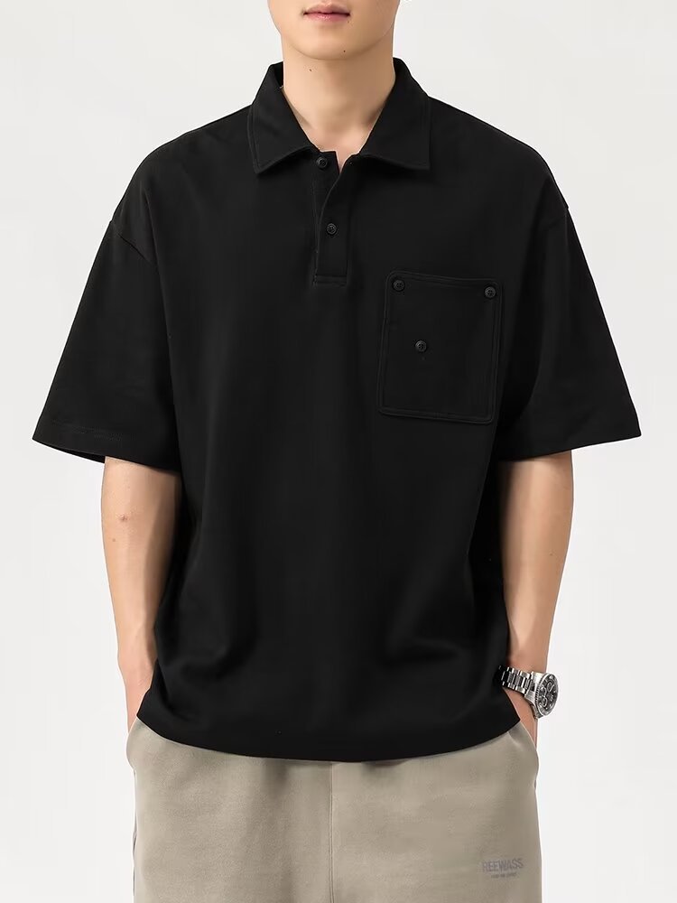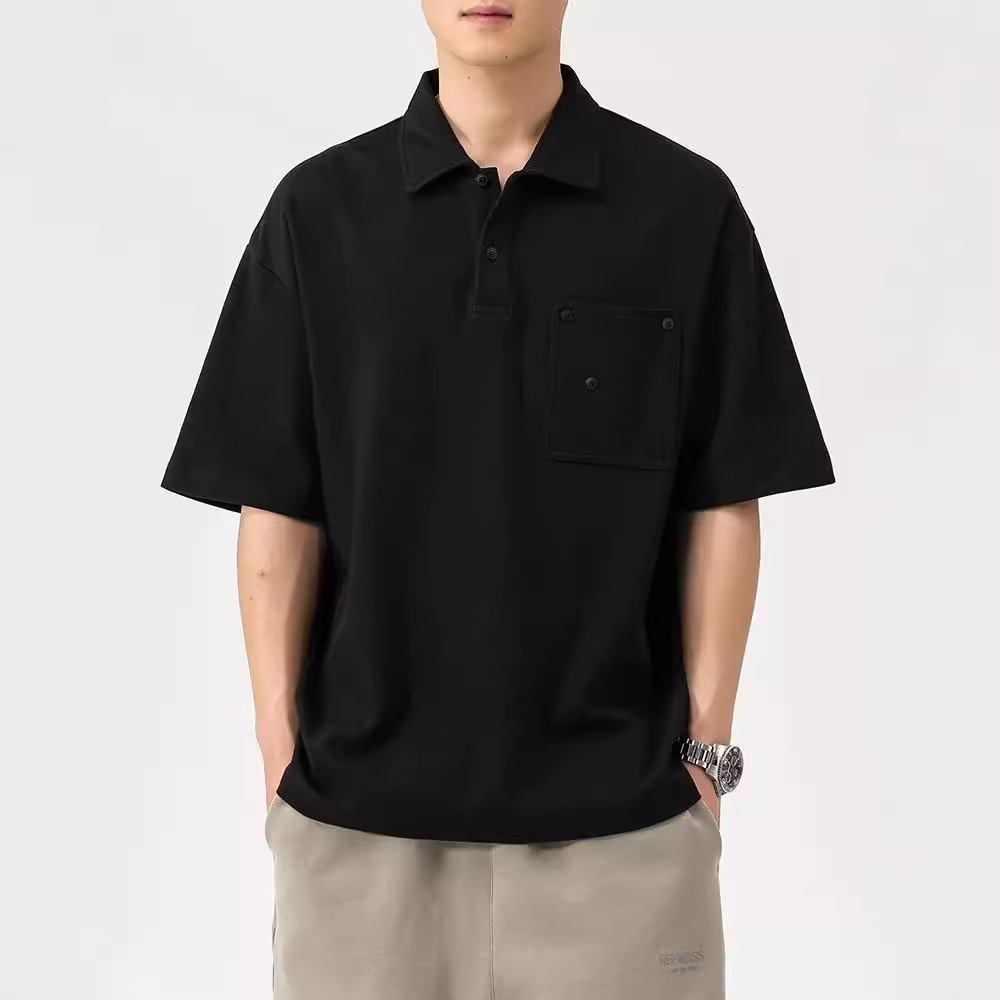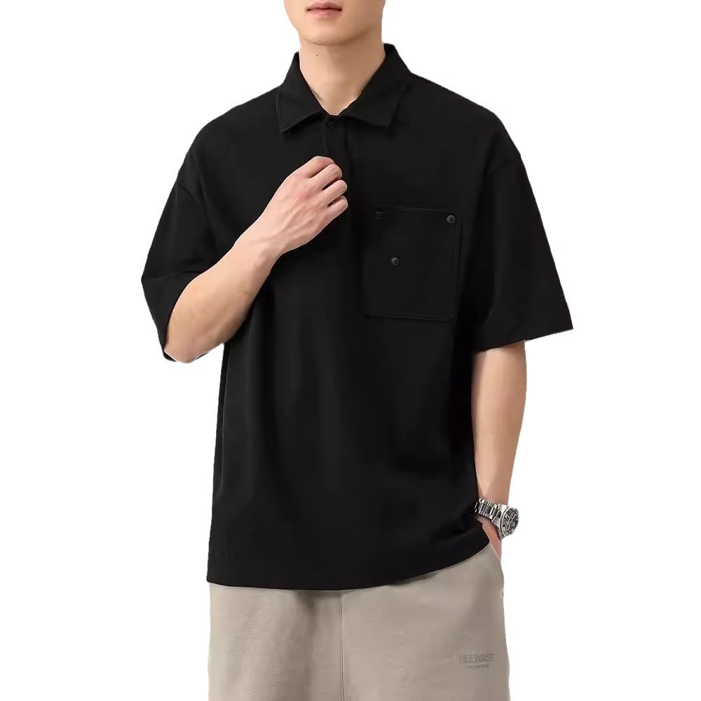 夏季薄款口袋T恤男士简约翻领半袖潮牌POLO衫青少年宽松休闲短袖