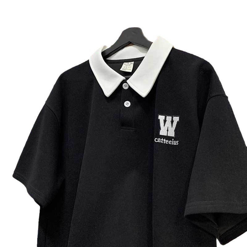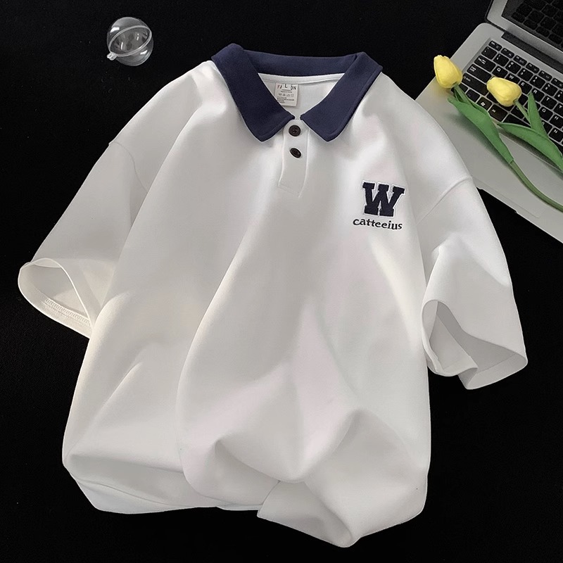 polo衫短袖男夏季宽松刺绣重磅纯棉青少年t恤学院风撞色半袖体恤
