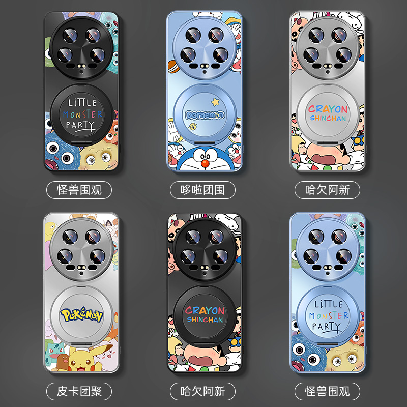 小米15手机壳带旋转折叠支架新款小米15全包防摔15高级感卡通十五磨砂硅胶保护套散热