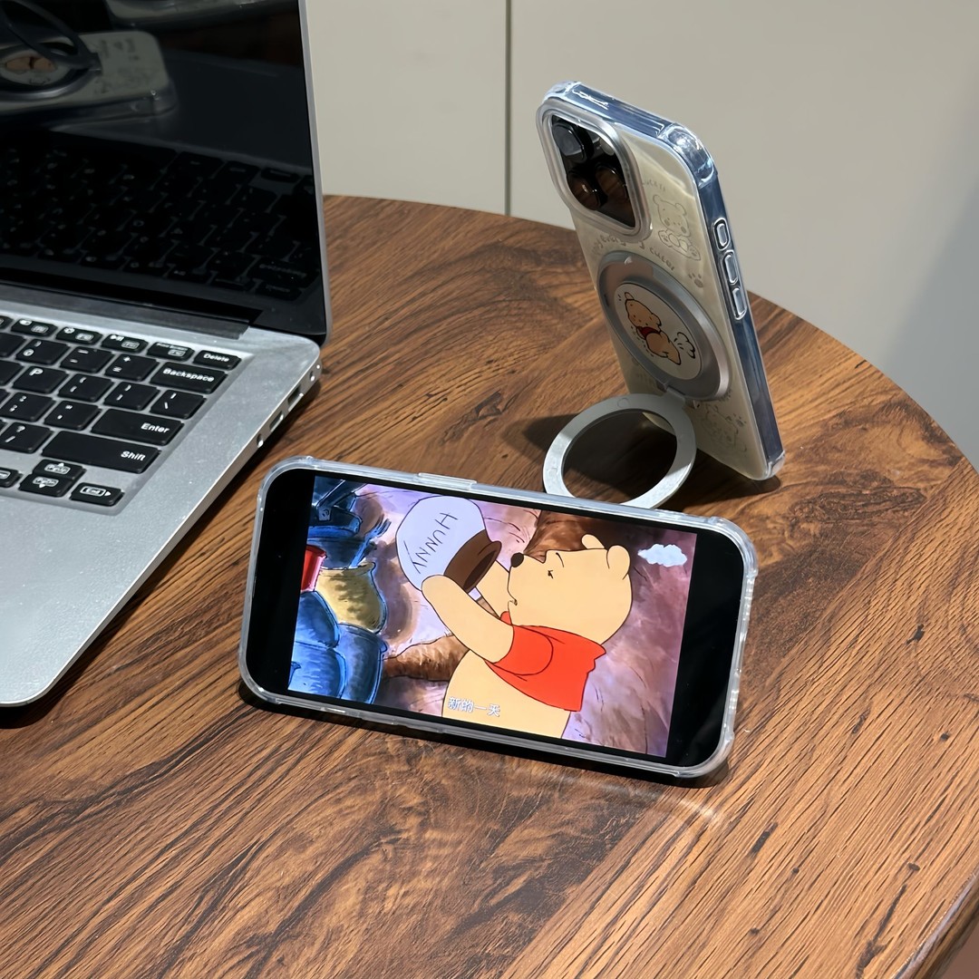 维尼熊旋转支架适用苹果16promax手机壳iphone15小米14华为mate60pro新款Pura70女opporeno13荣耀vivos20