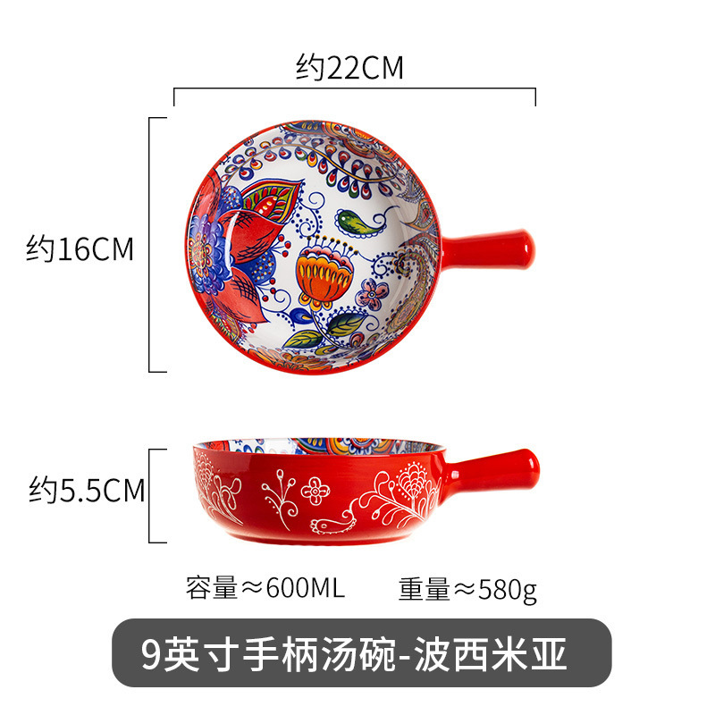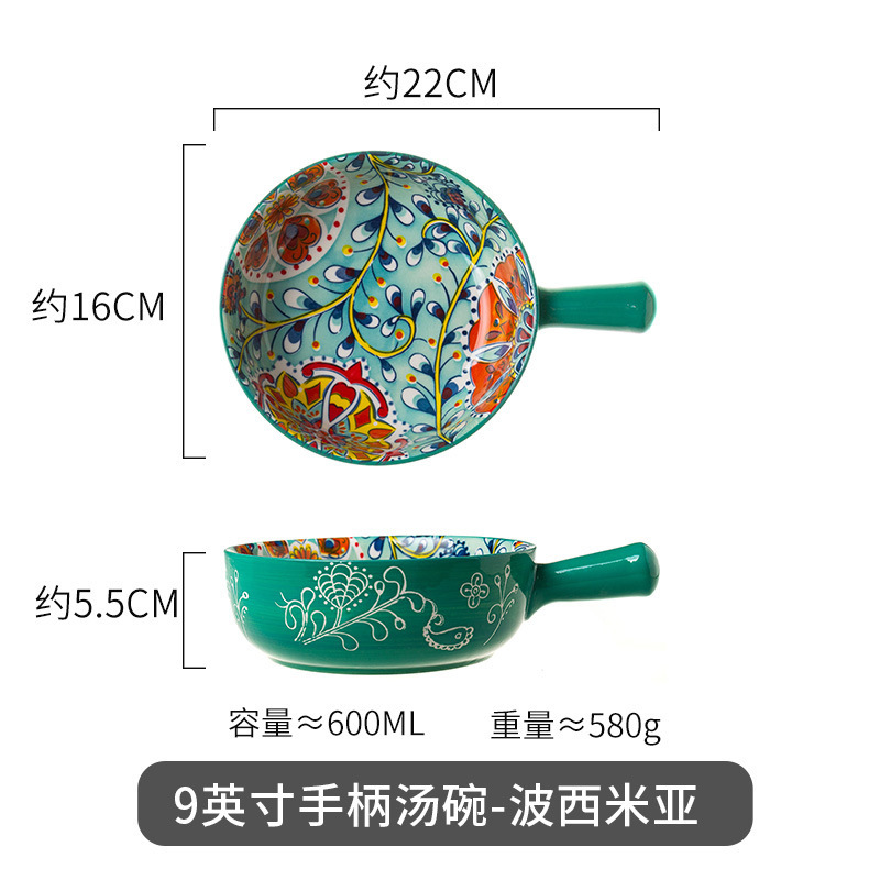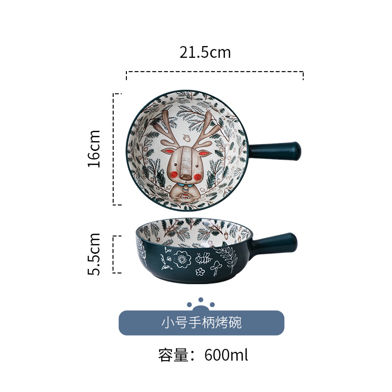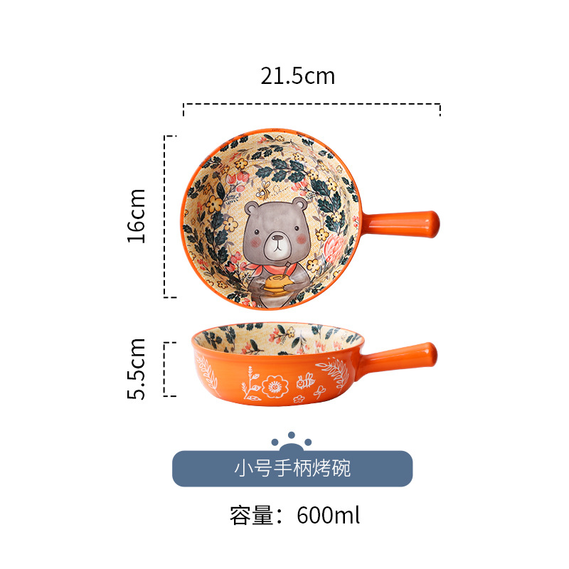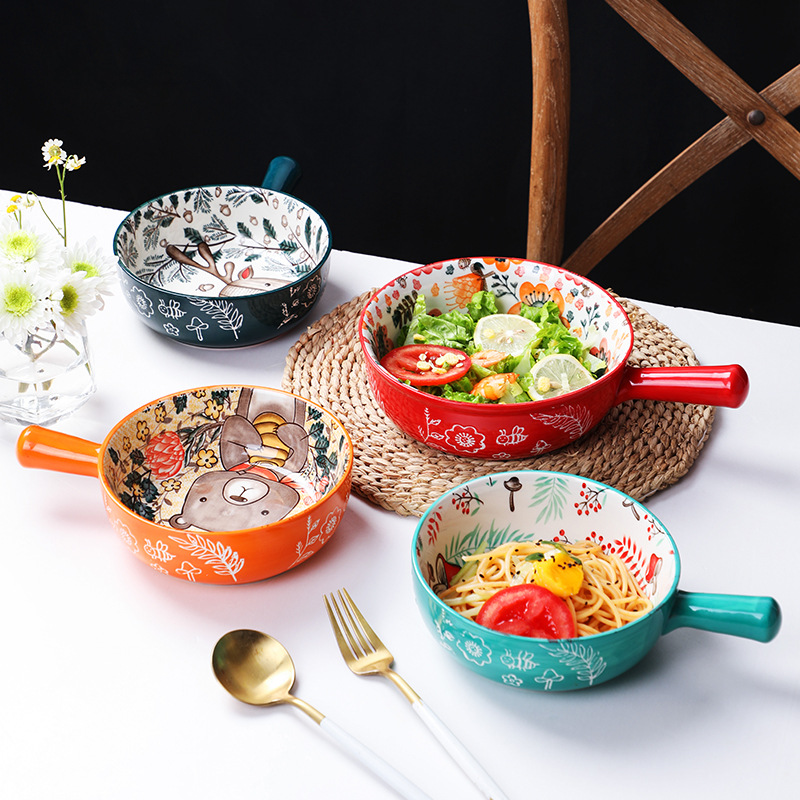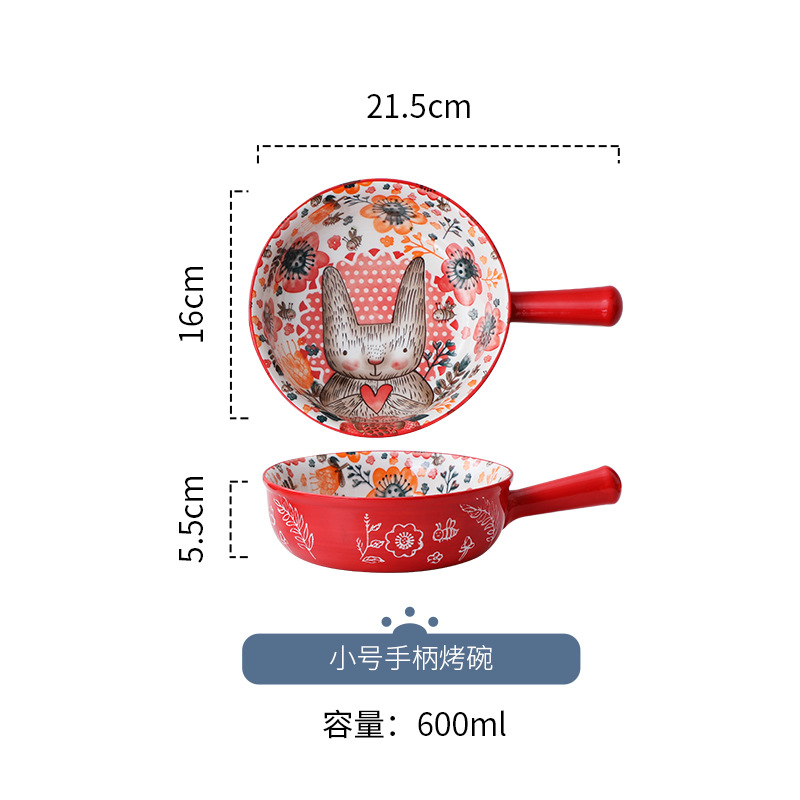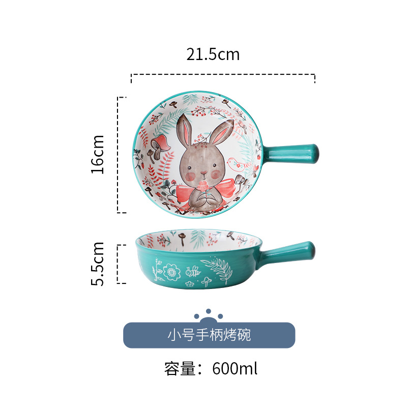 陶瓷手绘手把碗创意卡通陶瓷早餐沙拉碗带手柄焗饭碗烤碗