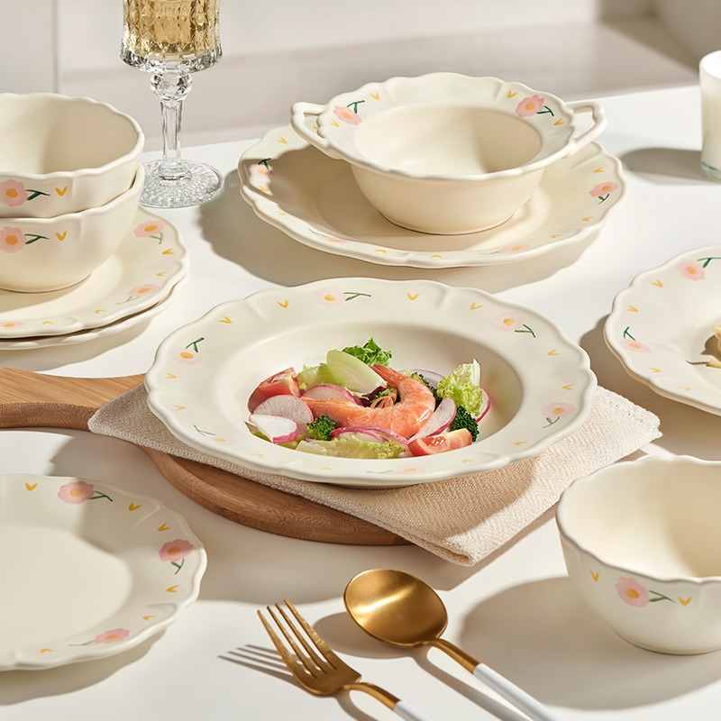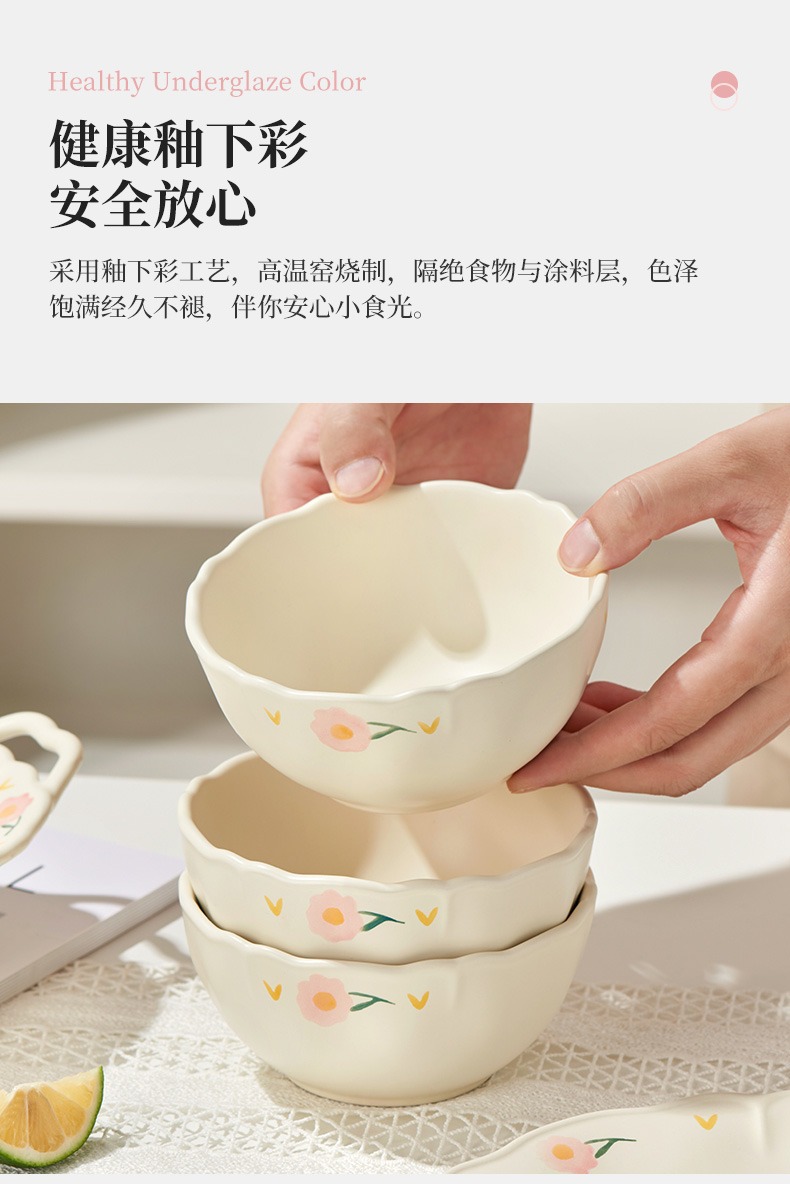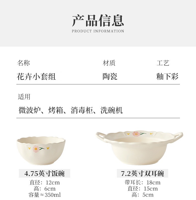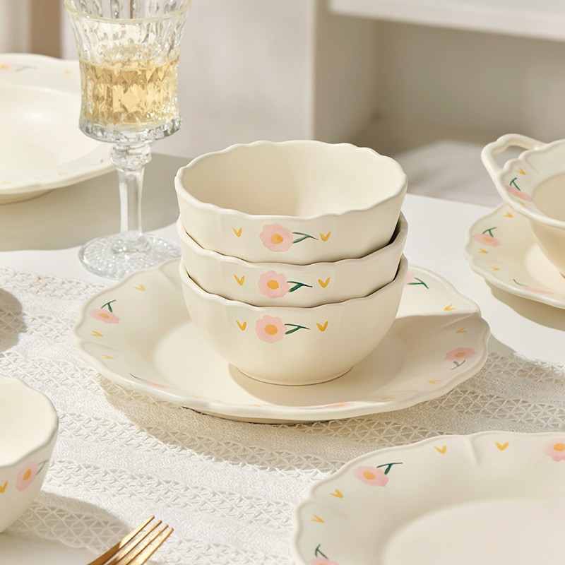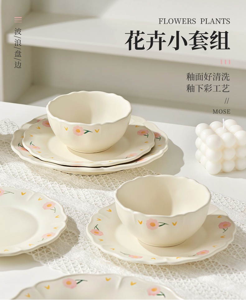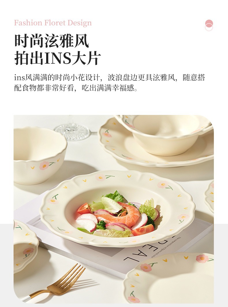 清新可爱碗碟套装碗盘筷家用一人食餐具陶瓷饭碗新款面碗盘子