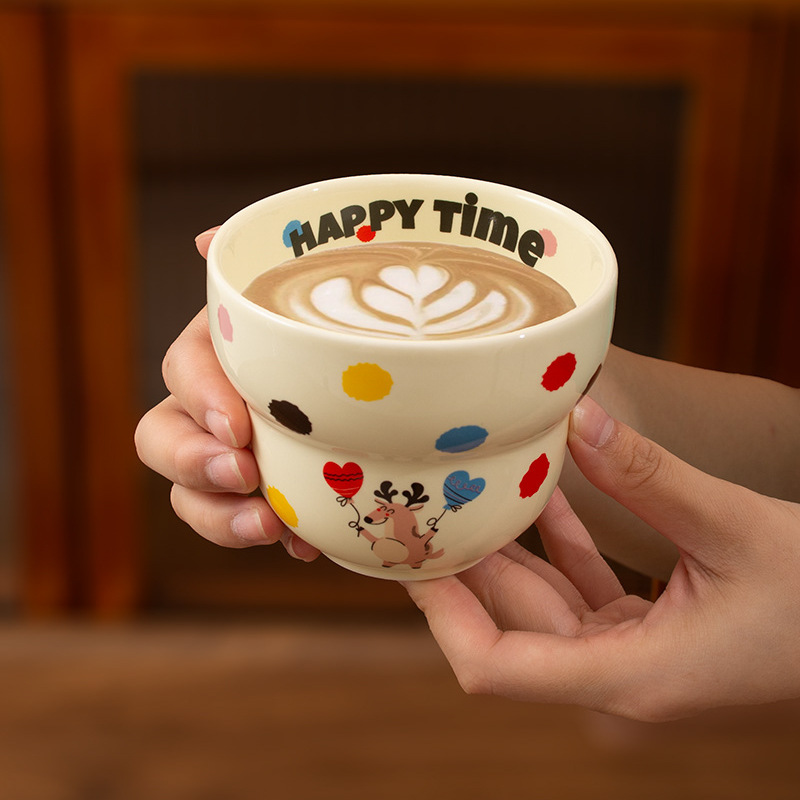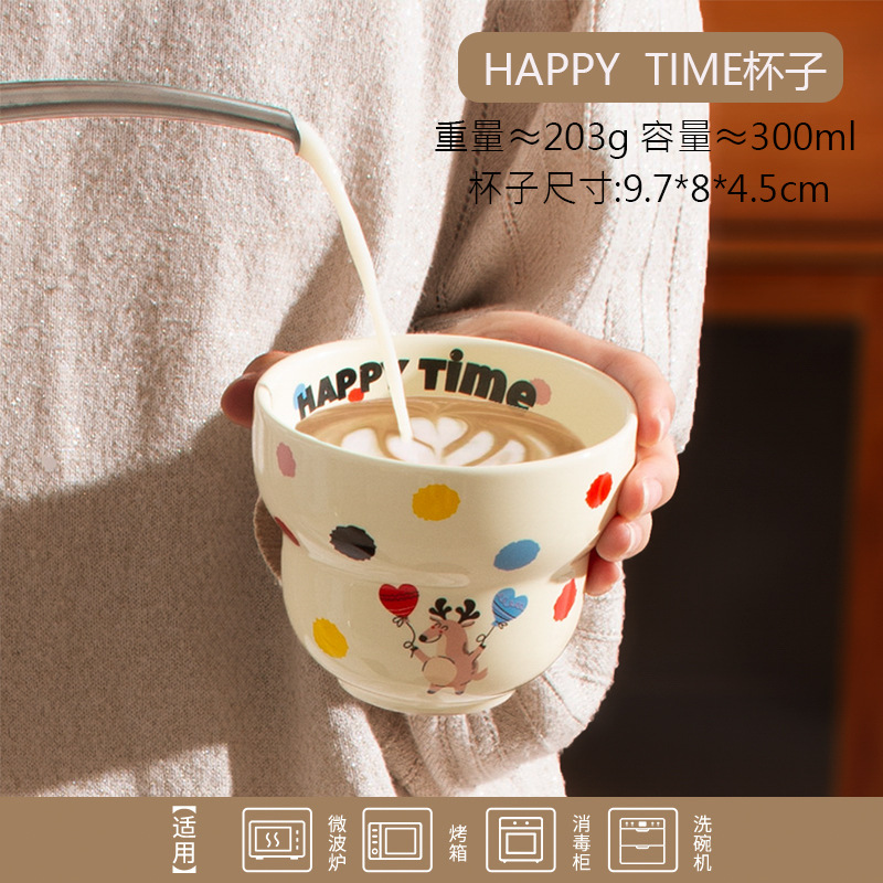 可爱波点手握咖啡杯子特别好看的马克杯女拿铁杯陶瓷杯家用喝水杯