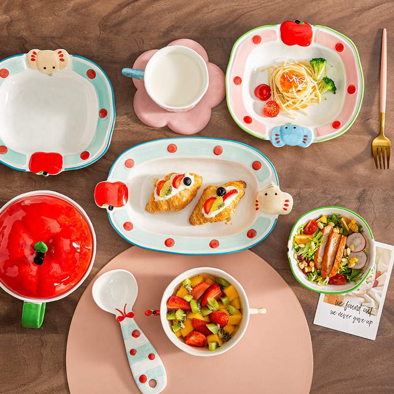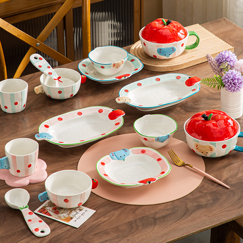 釉下彩可爱小象陶瓷饭碗家用卡通高颜值餐具带盖泡面碗酸奶碗餐盘