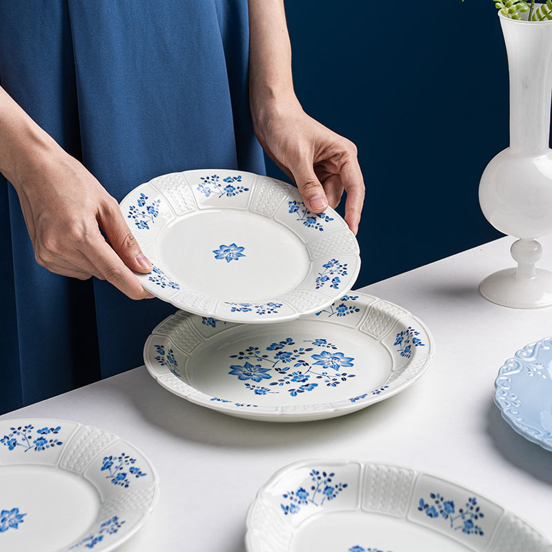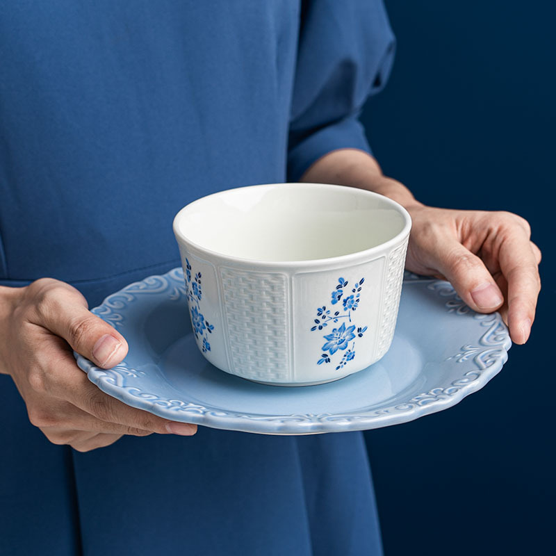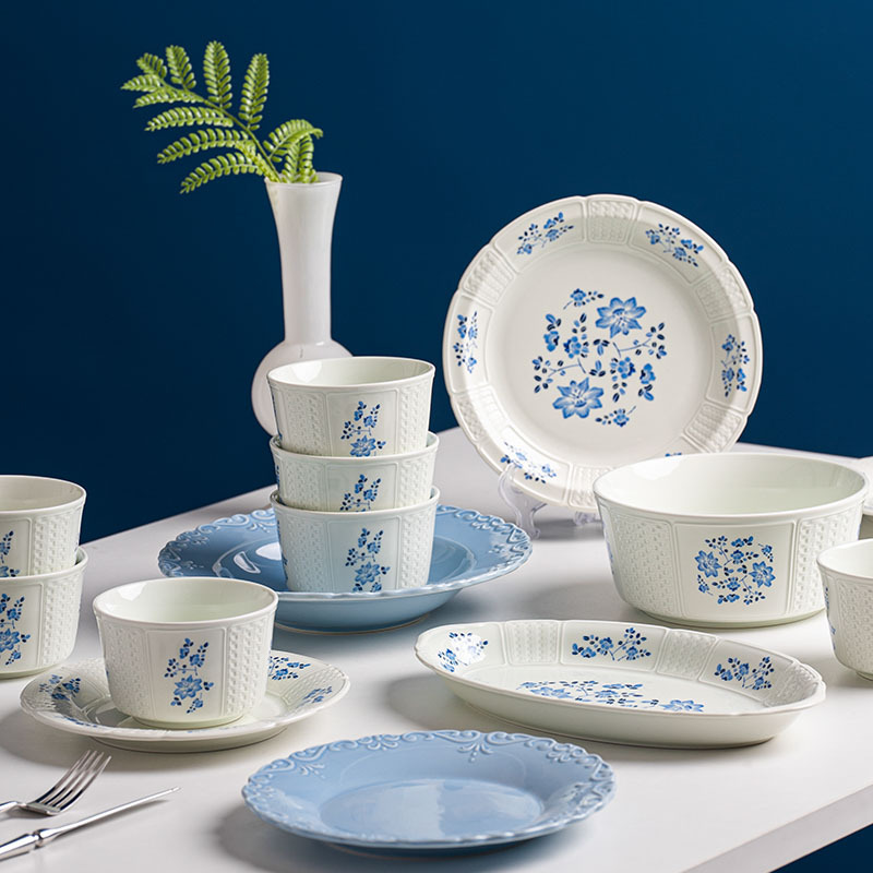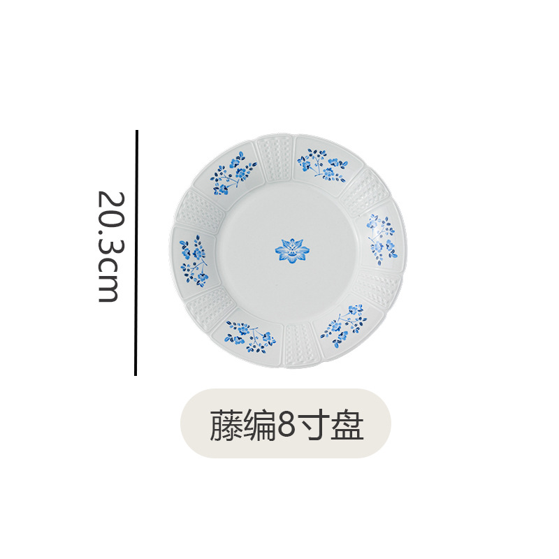 藤编新中式餐具套装碗碟家用釉下彩碗盘新款碗筷新婚入宅礼物