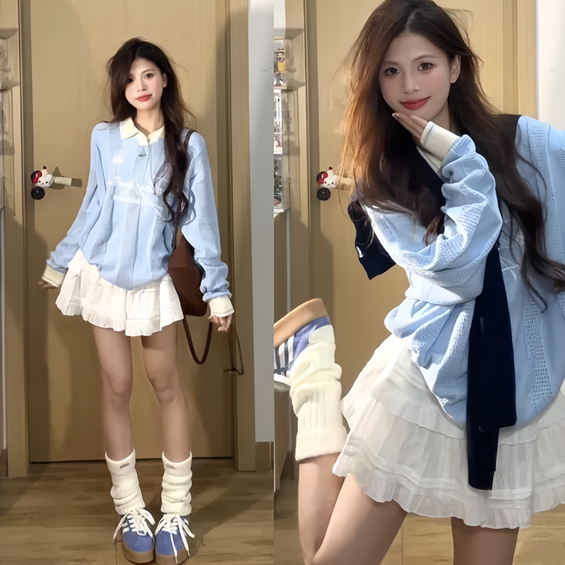 秋季新款纯欲挂脖内搭设计感假两件长袖T恤女学生打底衫上衣