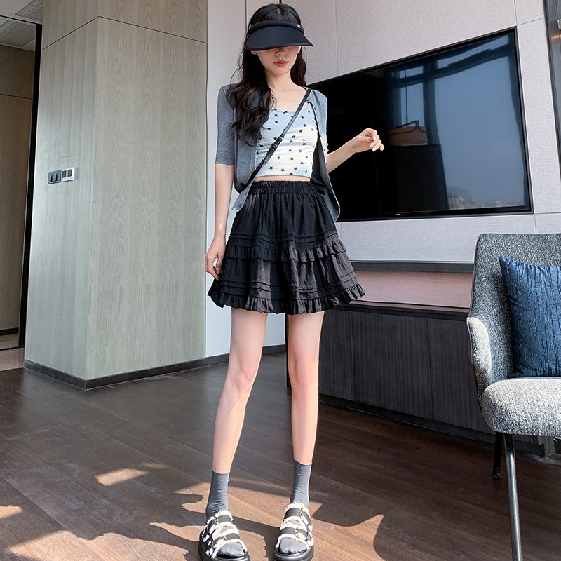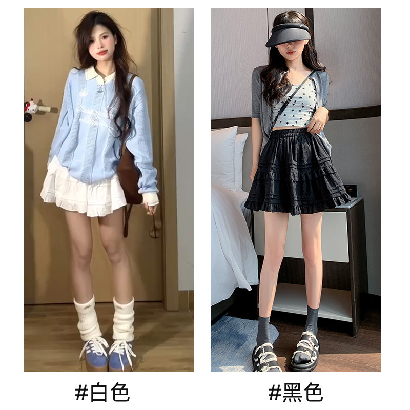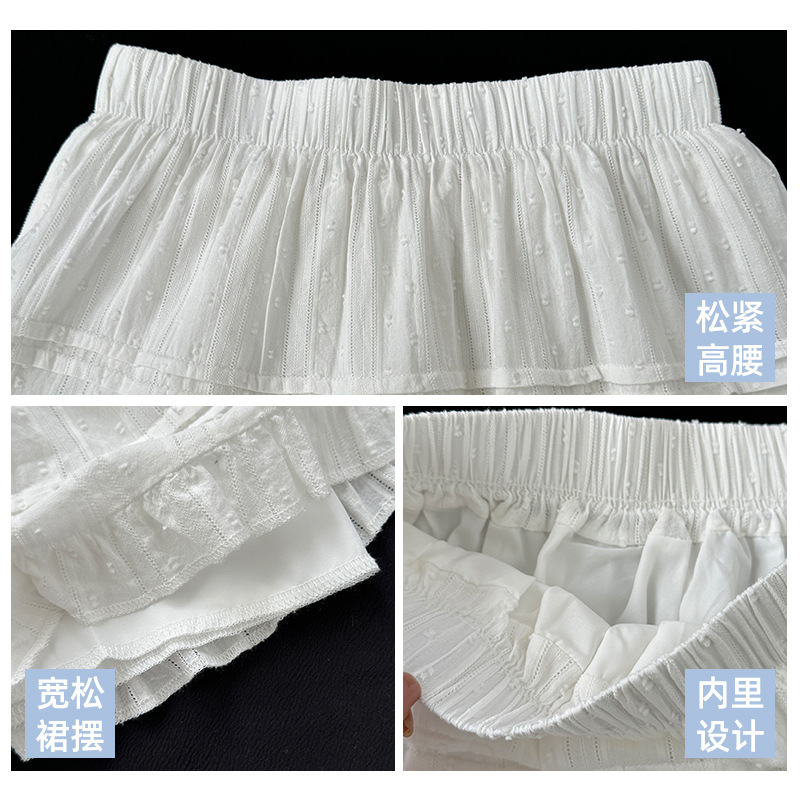 白色蛋糕短裙女夏季2025新款高腰显瘦a字裙裤法式蕾丝拼接半身裙