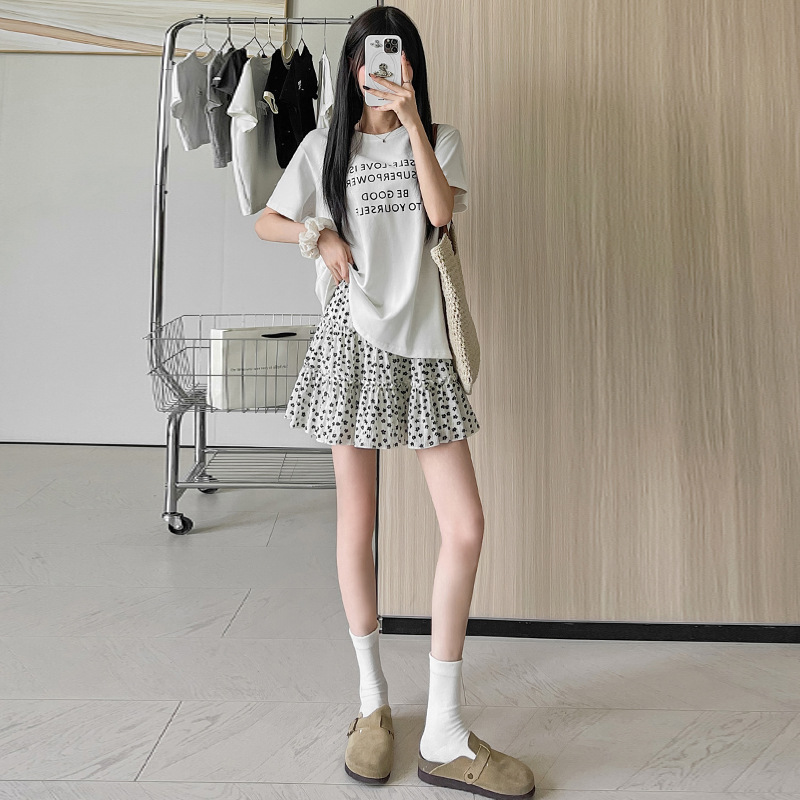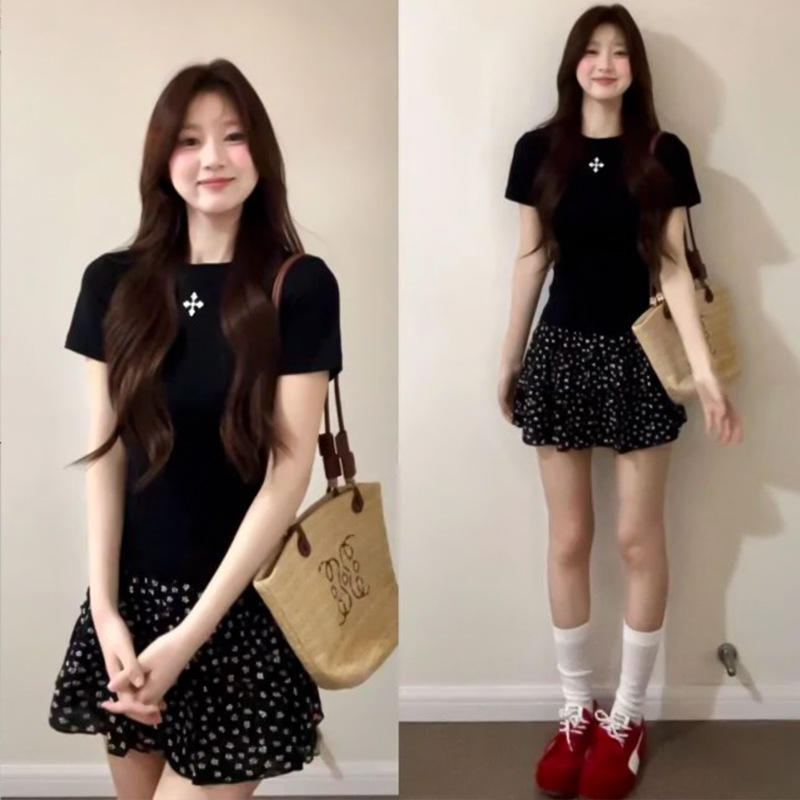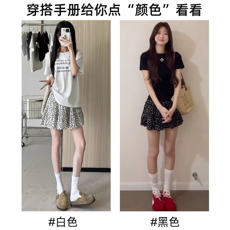 黑色韩版碎花短裙女夏季2025新款高腰显瘦a字裙防走光蛋糕半身裙