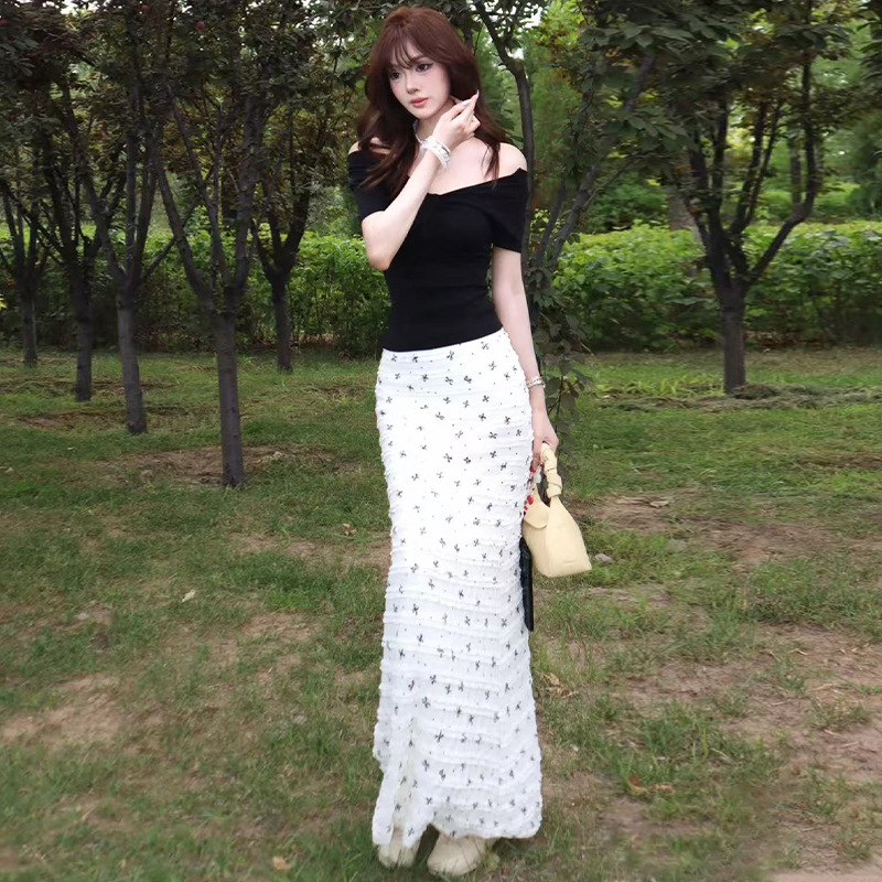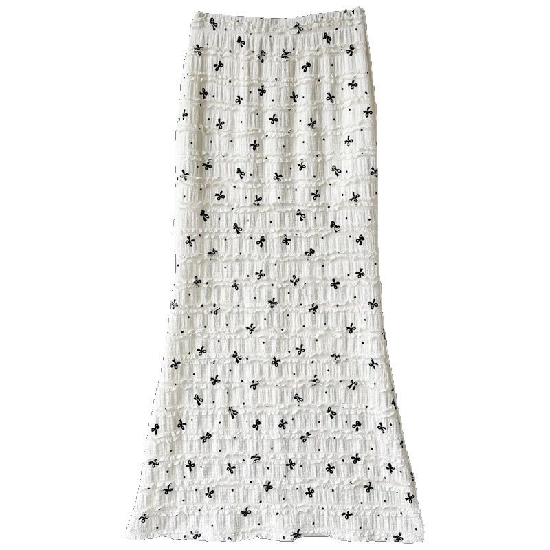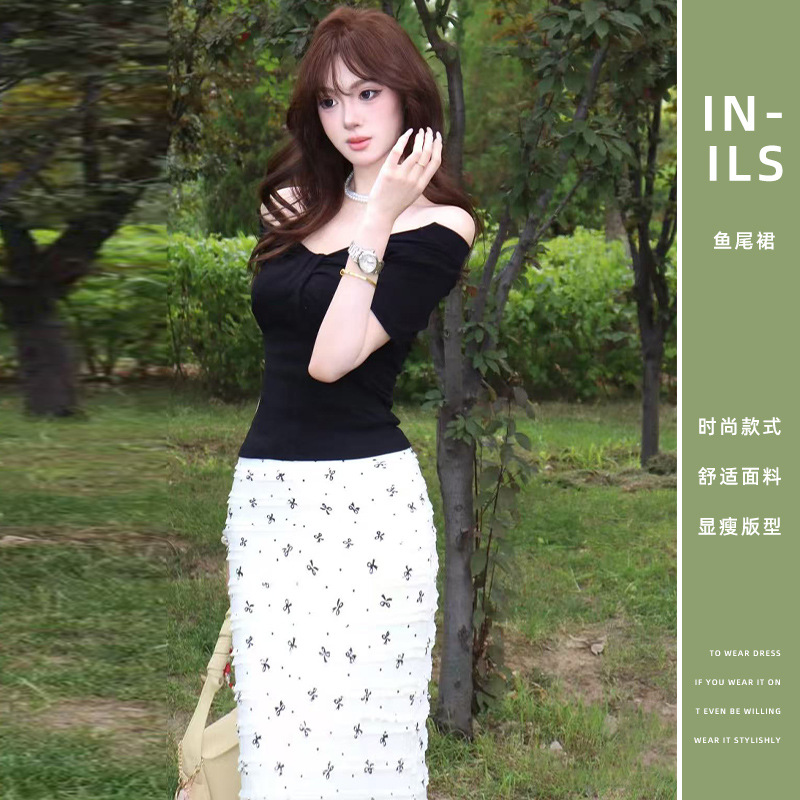 白色蝴蝶结蕾丝碎花包臀裙女2025夏季新款高腰遮胯显瘦鱼尾半身裙