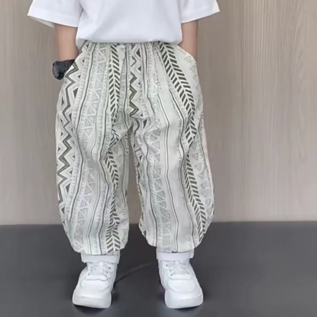 男童夏季防蚊裤薄款洋气时髦束脚裤新款中大童休闲冰丝灯笼裤