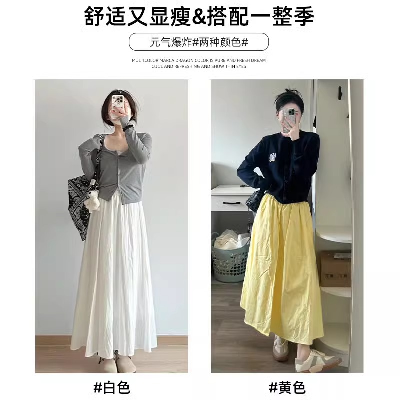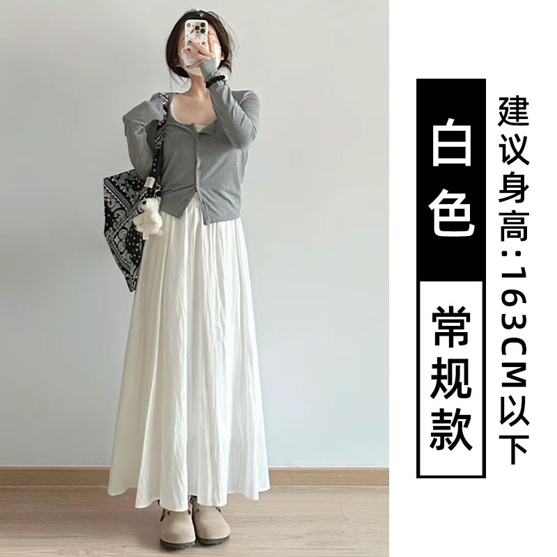 白色垂感半身裙女春夏2025新款高腰气质百褶裙显瘦小个子a字长裙