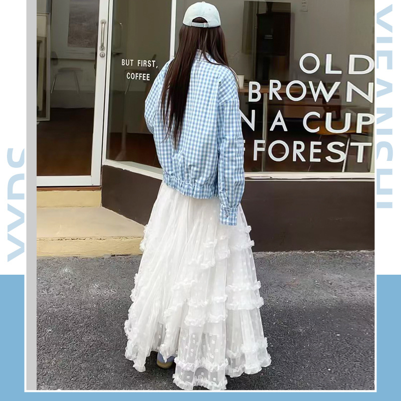 白色蕾丝网纱半身裙女夏2025新款中长款蓬蓬裙高腰显瘦a字蛋糕裙