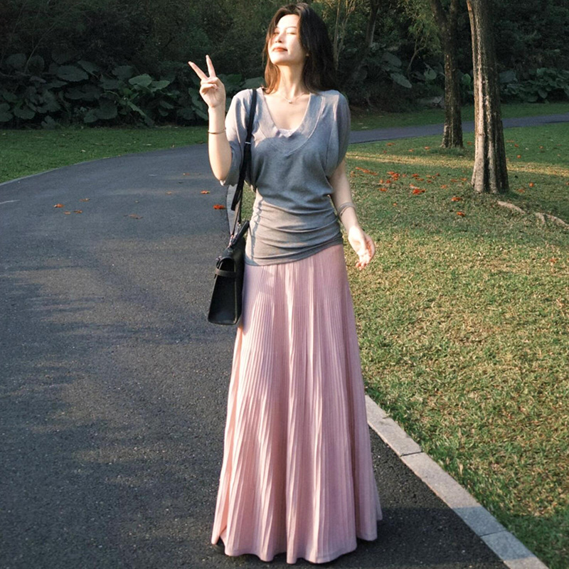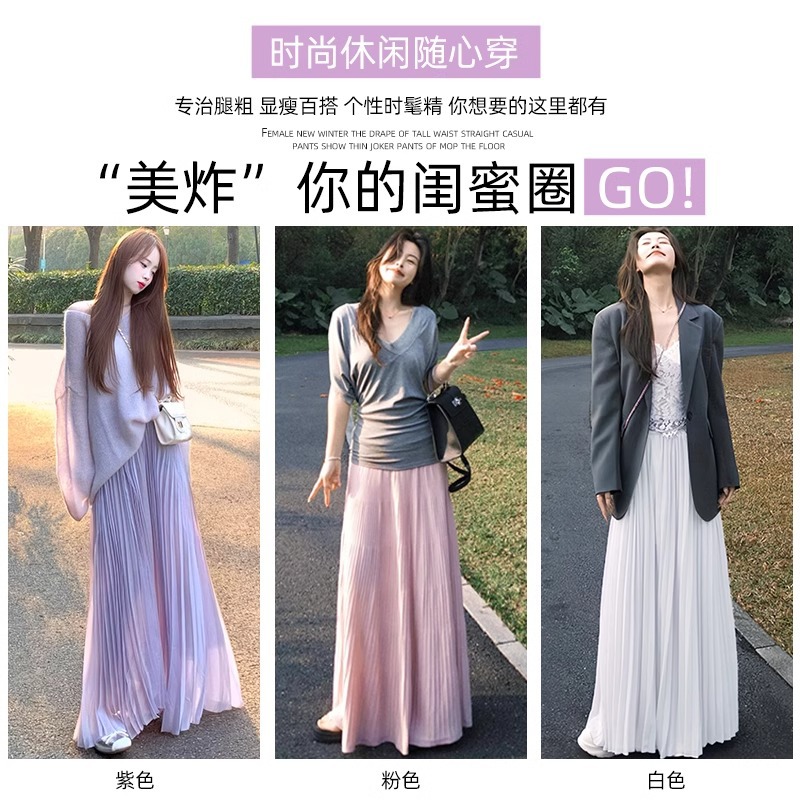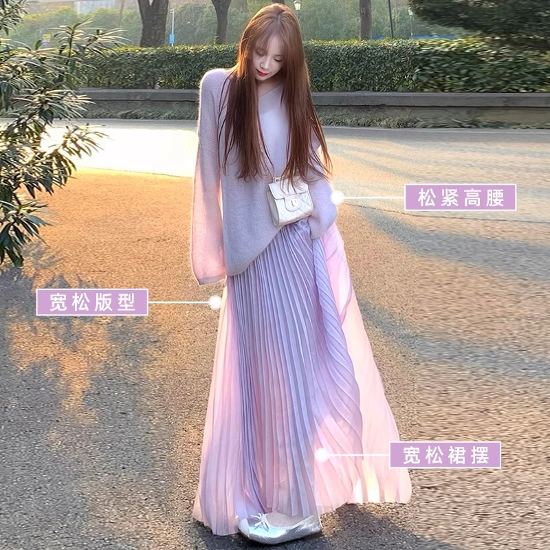 韩系紫色百褶裙女夏季2025新款高腰a字遮胯伞裙小个子褶皱半身裙