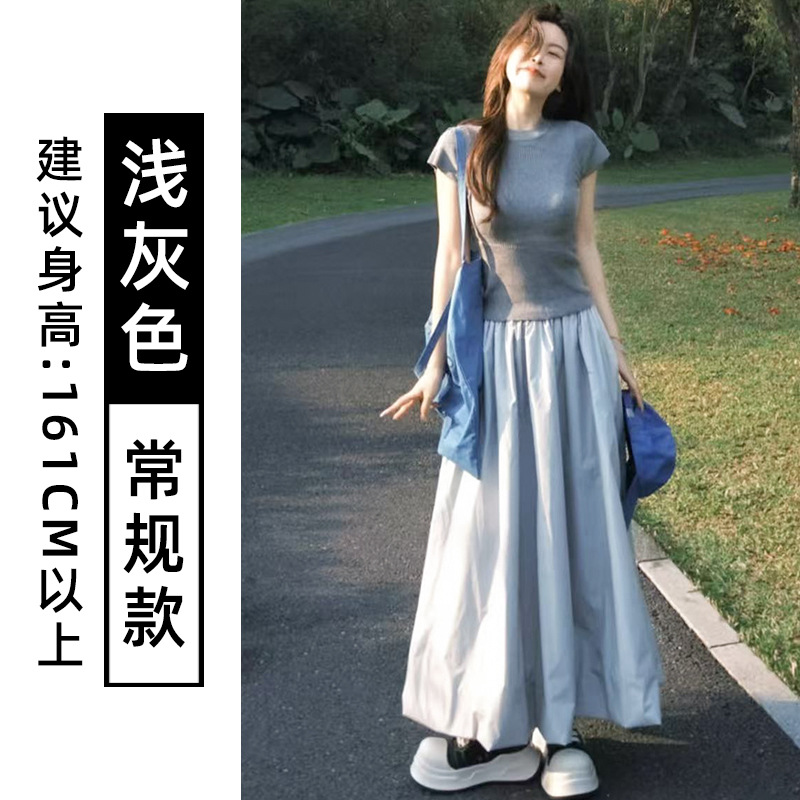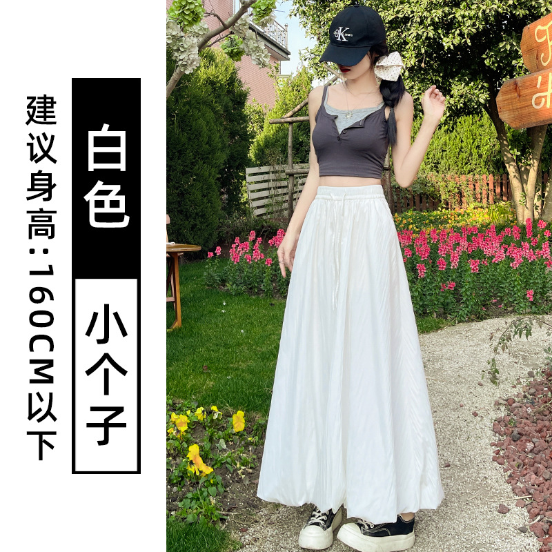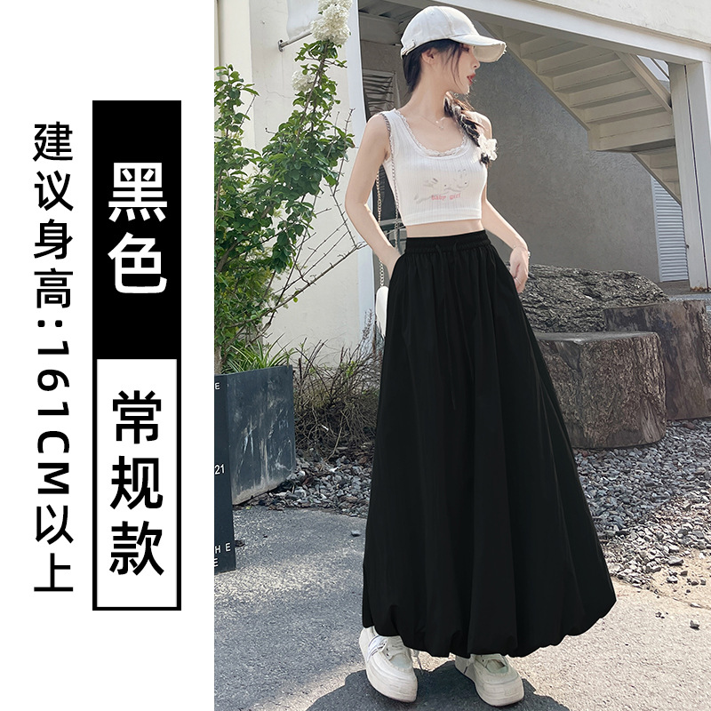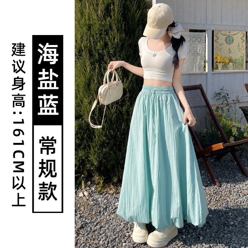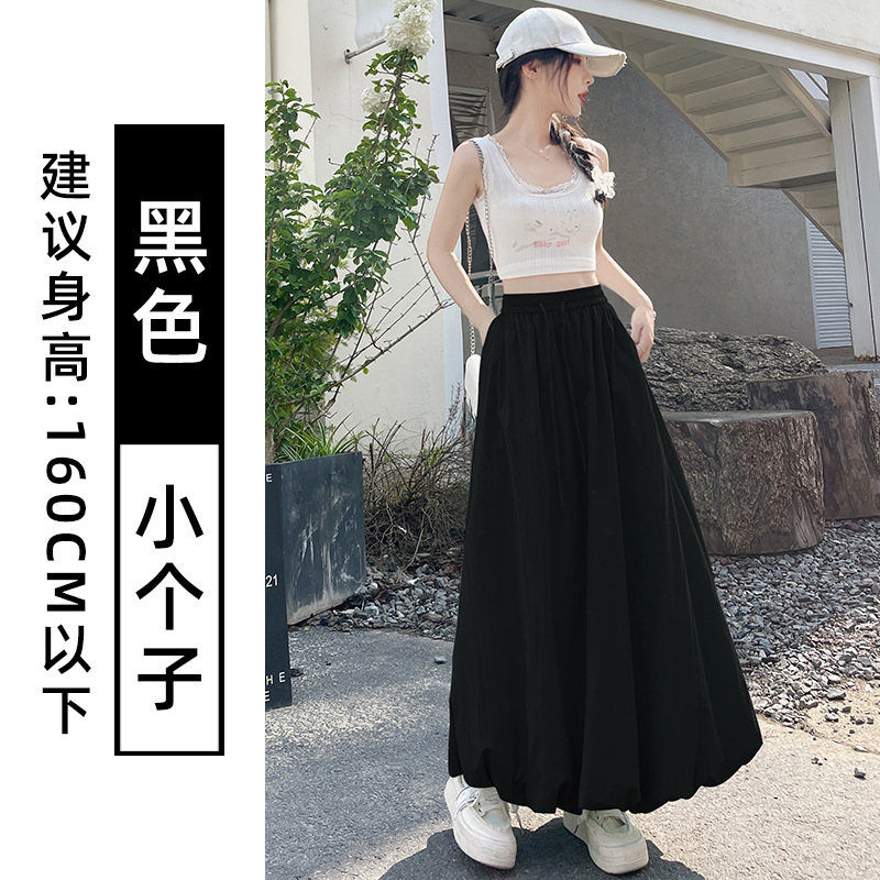 灰色蓬蓬花苞半身裙女夏季薄款冰丝灯笼裙气质高腰显瘦a字中长裙