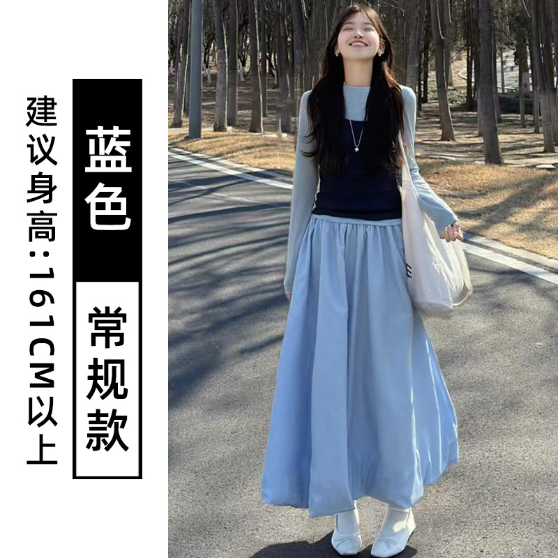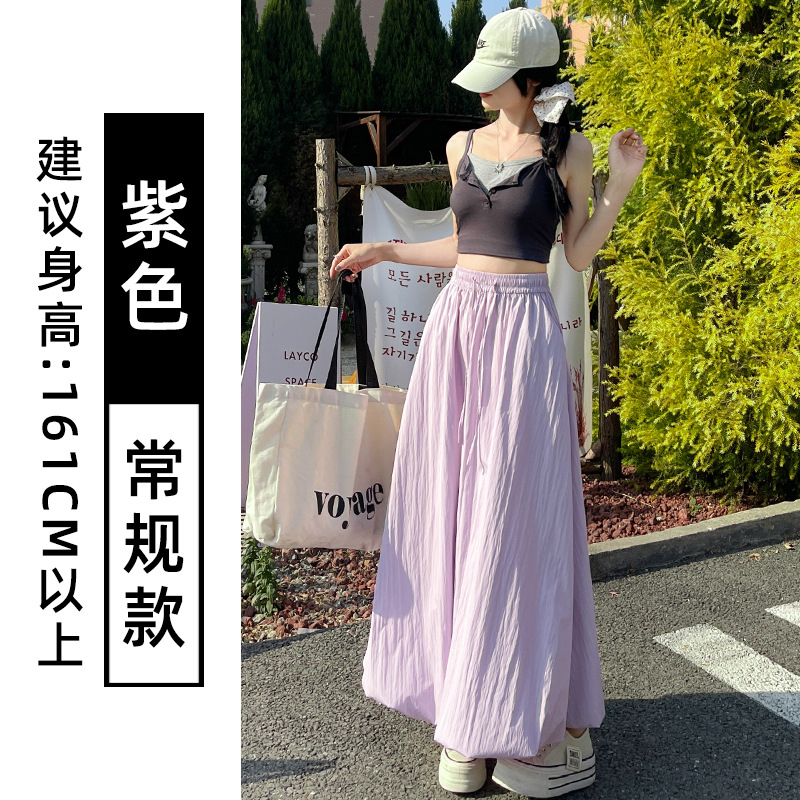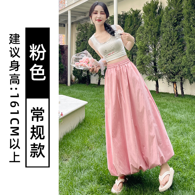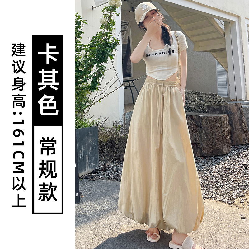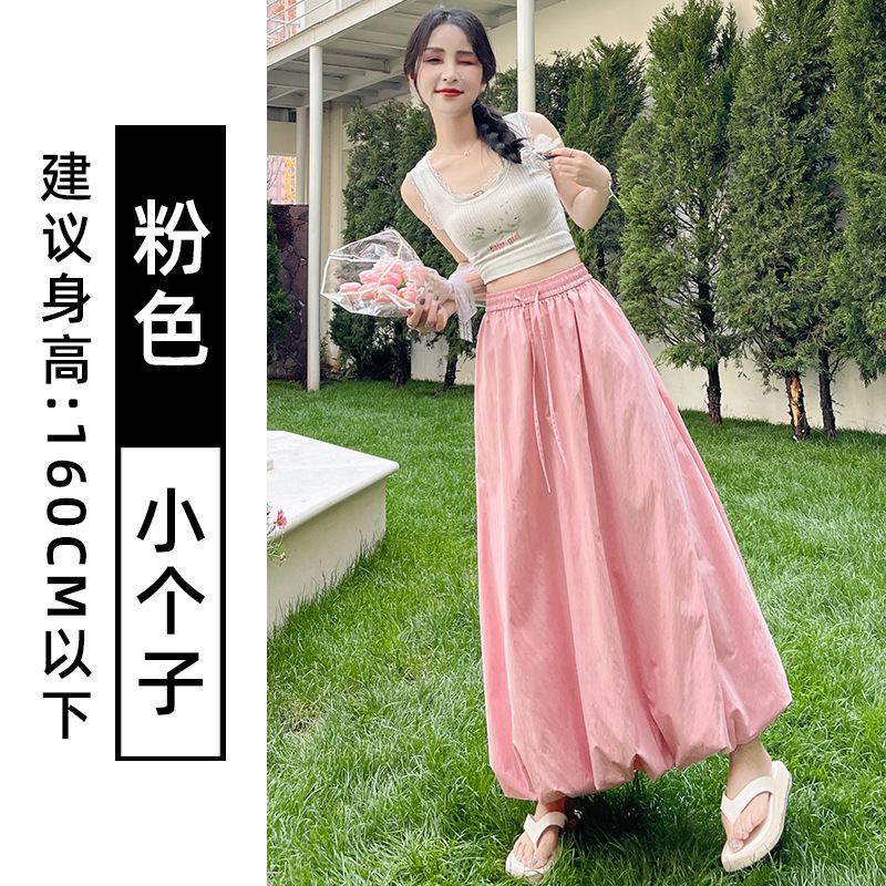 灰色蓬蓬花苞半身裙女夏季薄款冰丝灯笼裙气质高腰显瘦a字中长裙