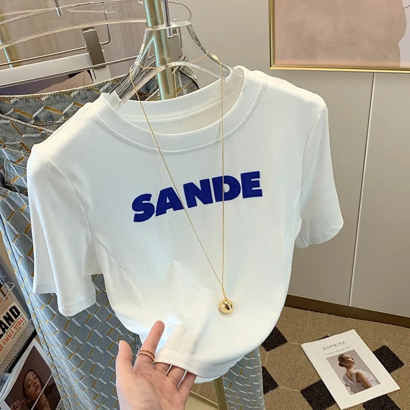 纯欲短款上衣设计感小众夏季修身显瘦字母白色短袖T恤女ins潮