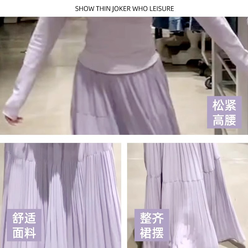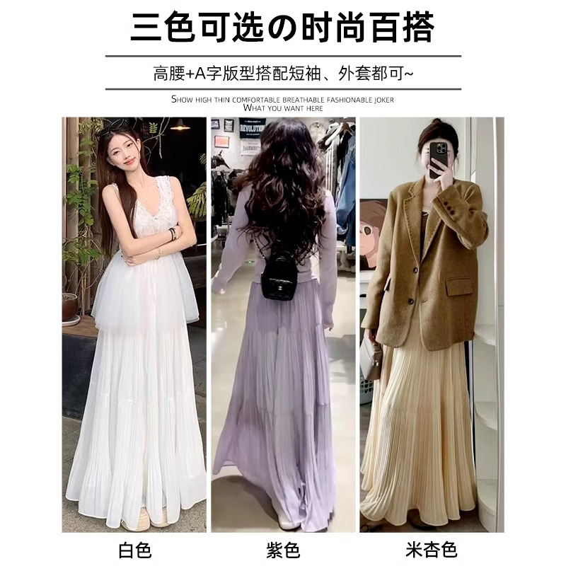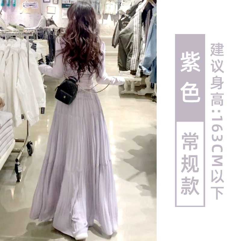 韩系紫色半身裙女2025夏季新款百褶裙中长款高腰显瘦a字蛋糕裙子