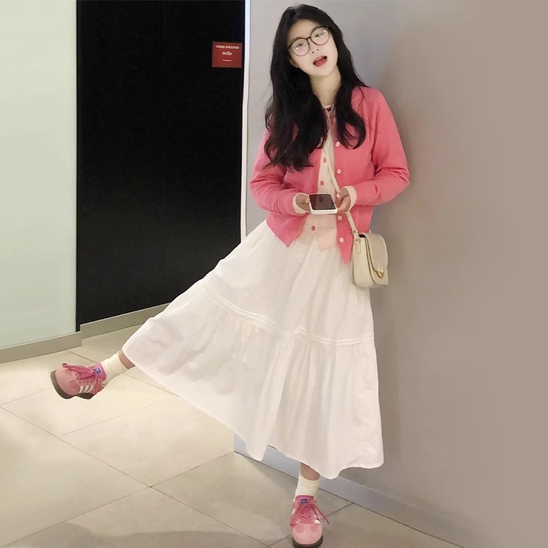 白色芭蕾风半身裙女夏季2025新款高腰a字中长款伞裙蓬蓬蛋糕裙薄