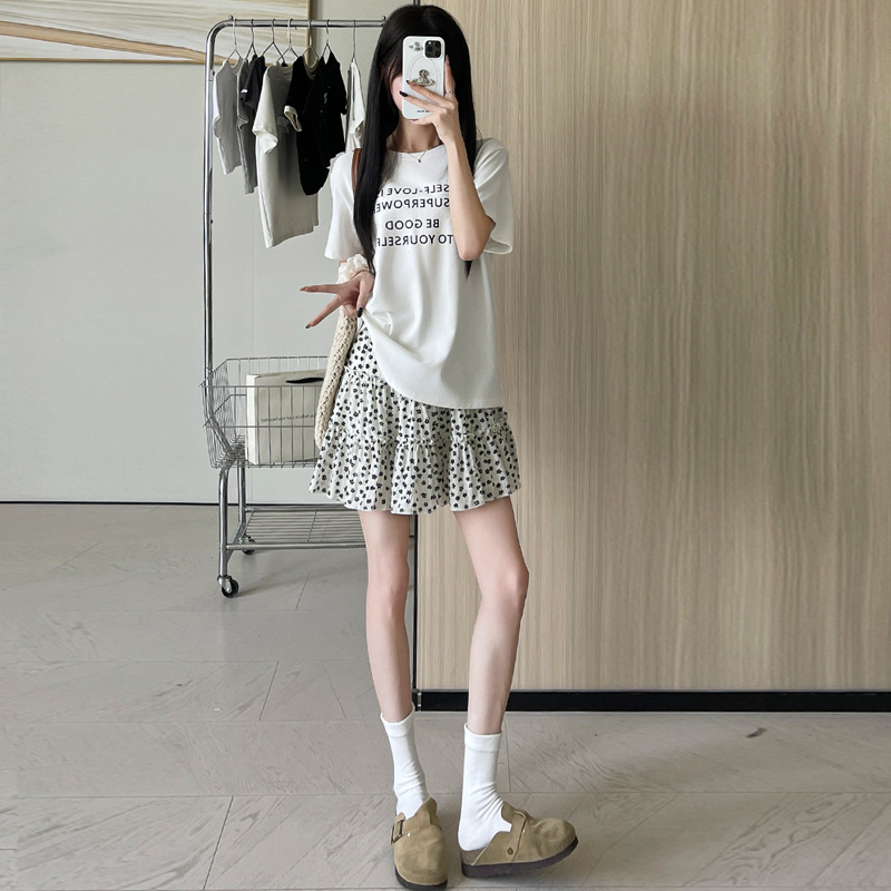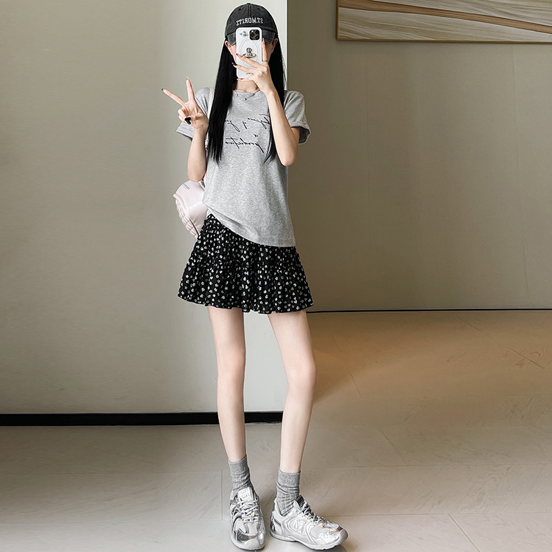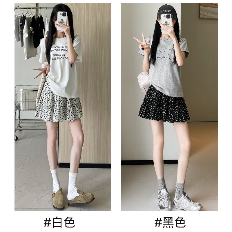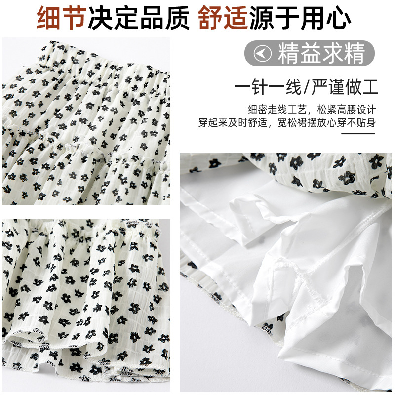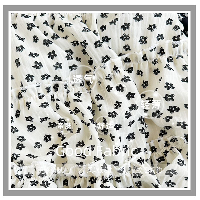 黑色小碎花短裙女夏季新款小个子高腰显瘦a字法式复古蛋糕半身裙